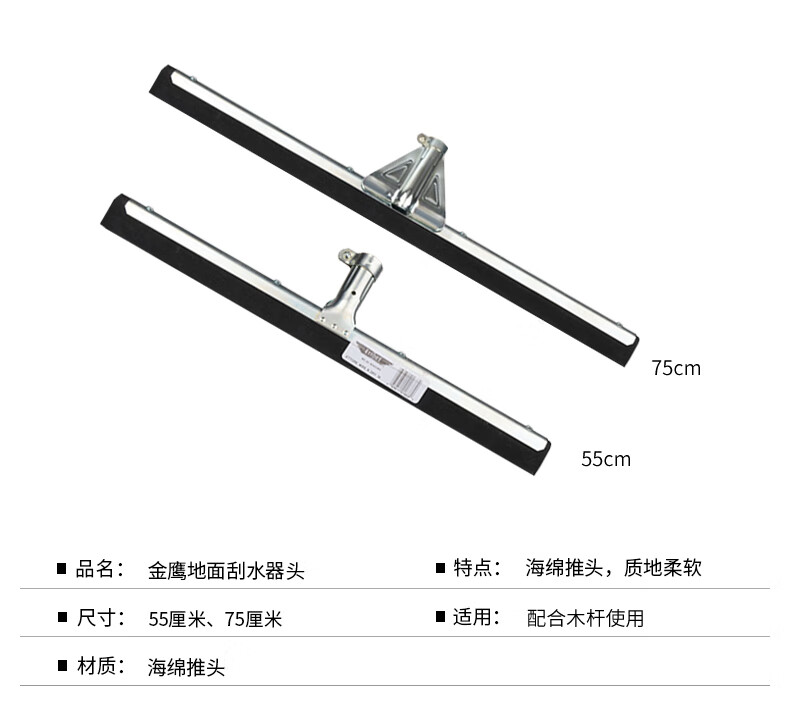 ETTORE 刮水器头 55CM 金鹰木杆海绵地刮不锈钢刮水器清洁刮推水器 1636