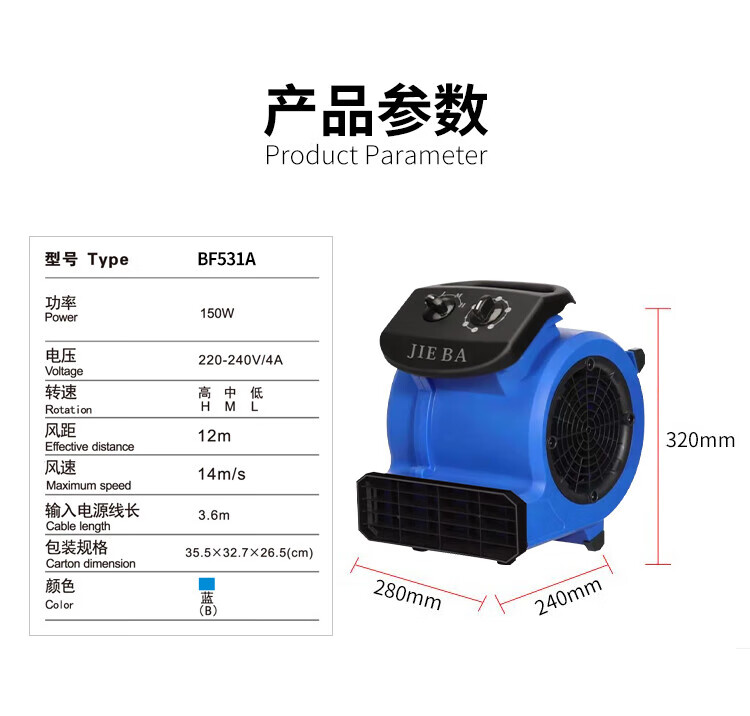 白云清洁 旋钮式吹⼲机 BF531A 蓝色 1台