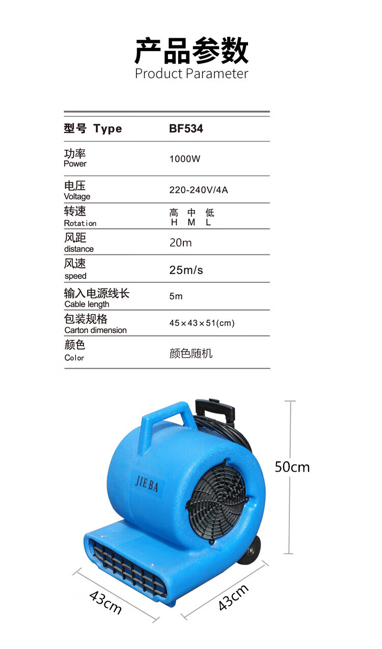 白云清洁 三速吹⼲机 BF534 带拉杆 颜色随机 1台