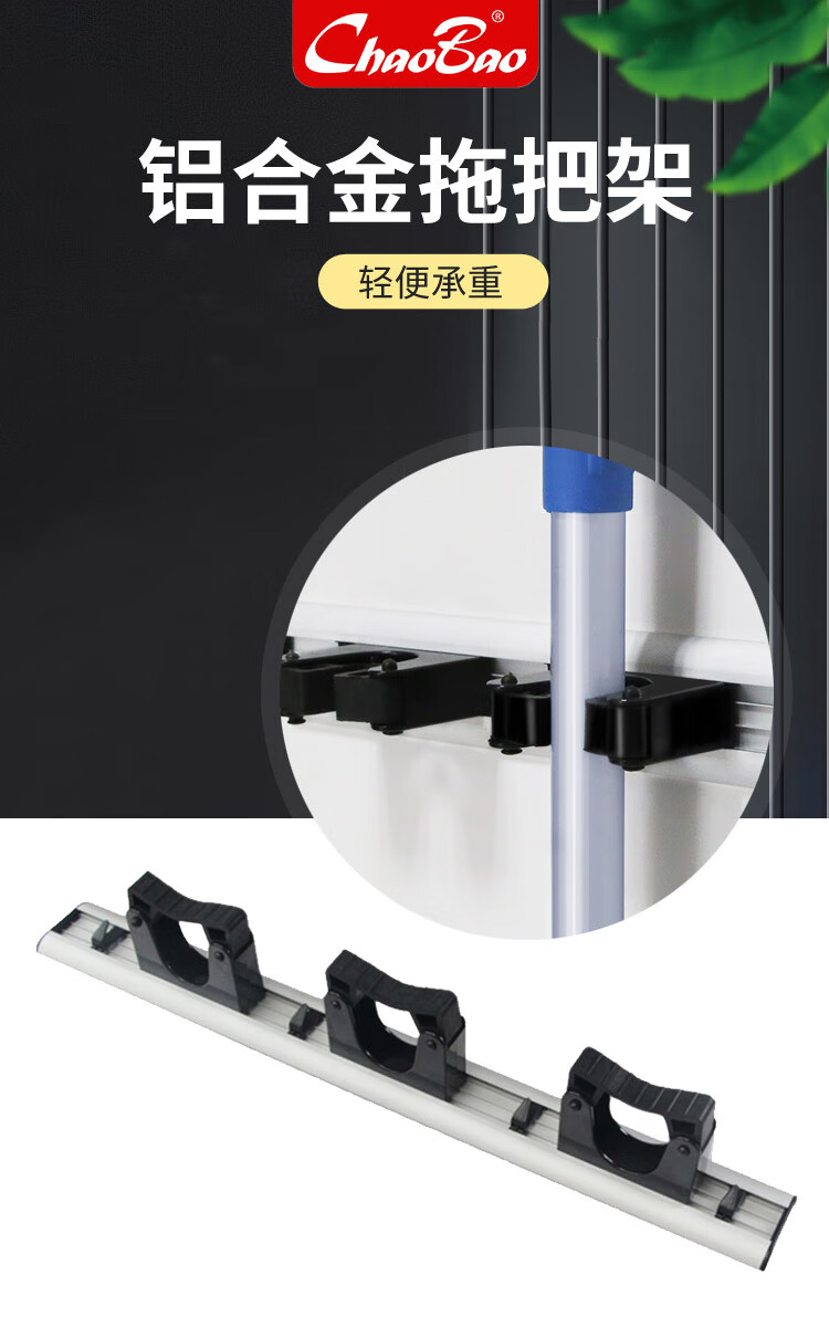 超宝 C-107 铝合金拖把架拖把夹拖把挂钩卫生间挂架 卡座 2头