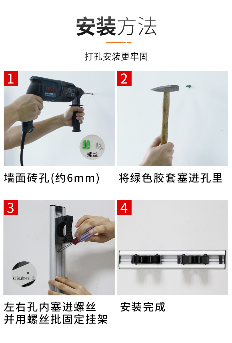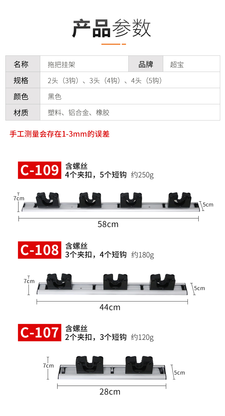 超宝 C-109 铝合金拖把架拖把夹拖把挂钩卫生间挂架 卡座 4头