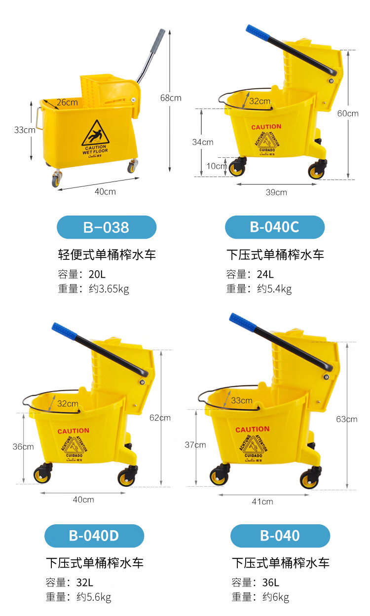 超宝 B-043 酒店商场保洁墩布车 侧压式双桶榨水车 50L