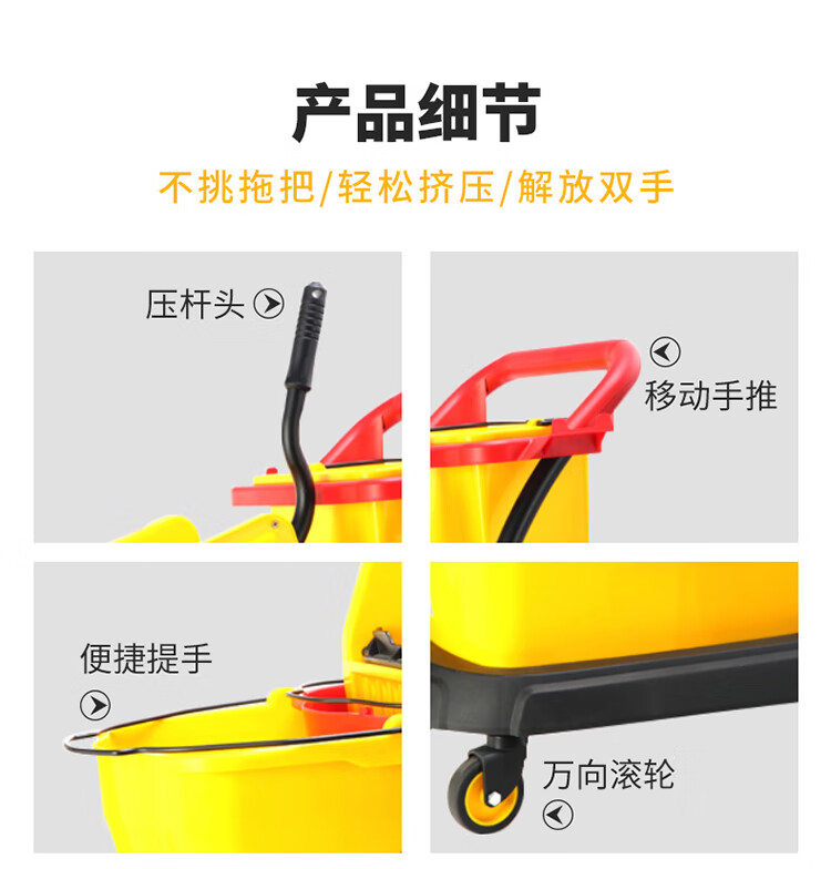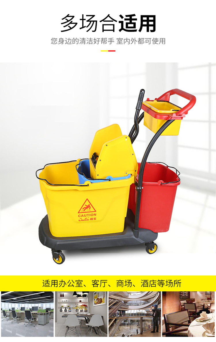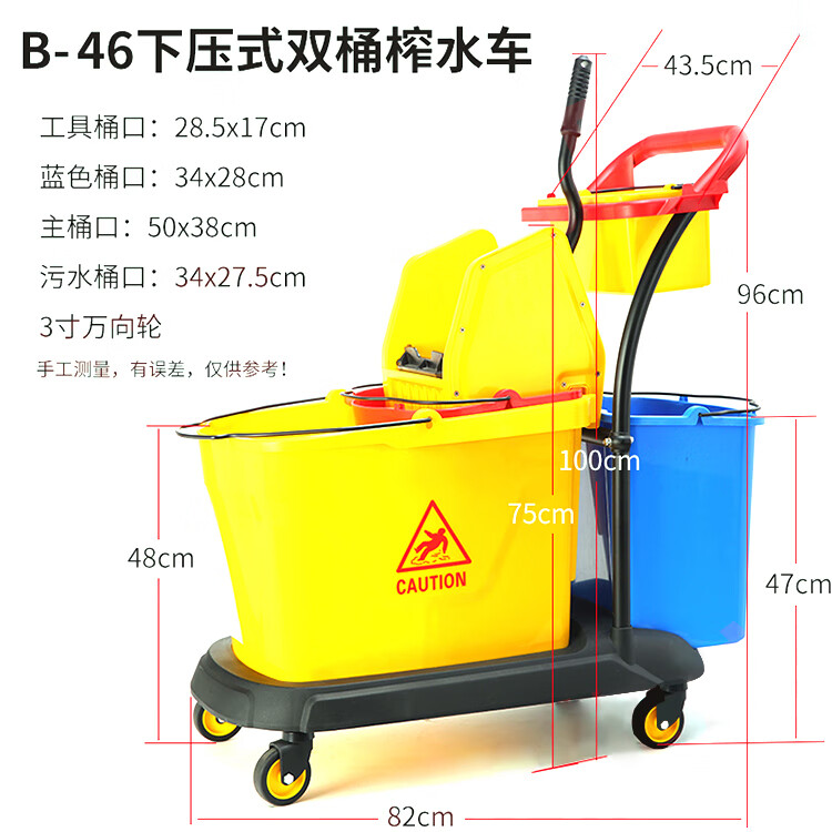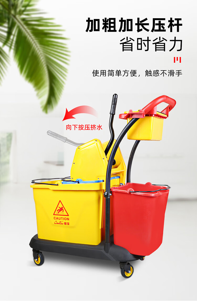 超宝 B-046 下压式双桶榨水车 清洁车酒店饭店餐厅手推车拖把拖地桶挤水桶