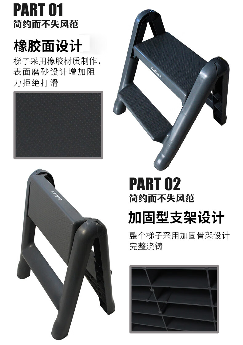 超宝 B-099C 脚踏梯便捷式二步梯加厚塑料折叠梯子保洁人字梯