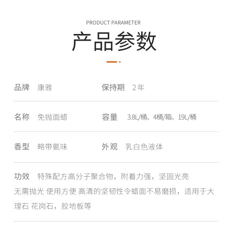 白云康雅 KY101 免抛面蜡 3.8L 4桶/箱