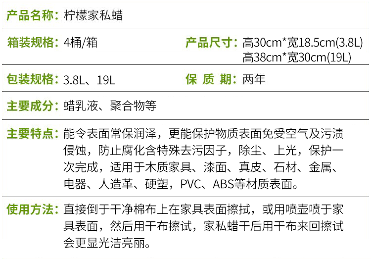 白云康雅 KY107 柠檬家私蜡 3.8L 4桶/箱