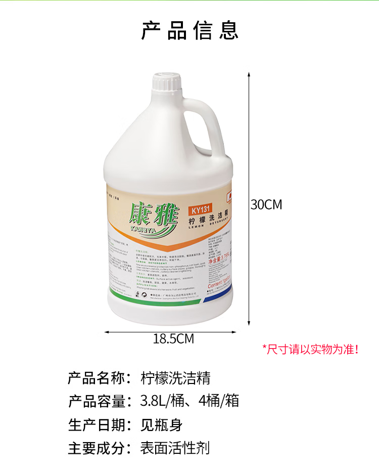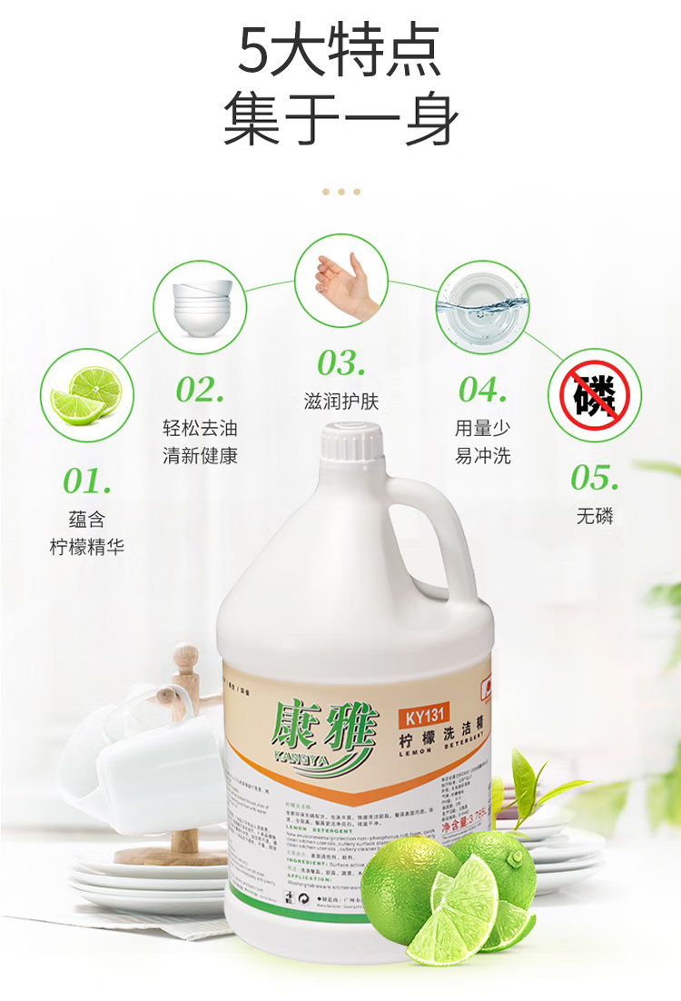 白云康雅 KY131 柠檬洗洁精 3.8L 4桶/箱