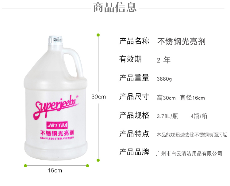 SUPERJEEBA JB118A 不锈钢光亮剂 3.78L/桶