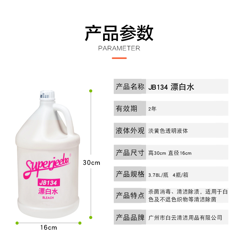 SUPERJEEBA JB134 漂白水 3.78L*4/箱