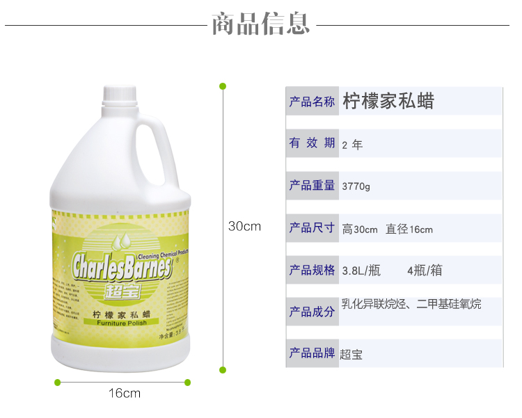 超宝 DFF005 柠檬家私蜡 3.78L 4桶/箱