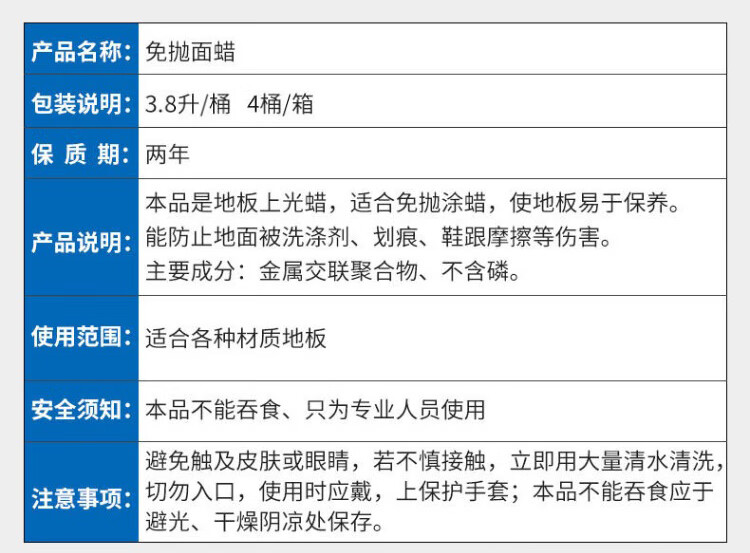 超宝 DFF002 免抛面蜡 3.78L 4桶/箱