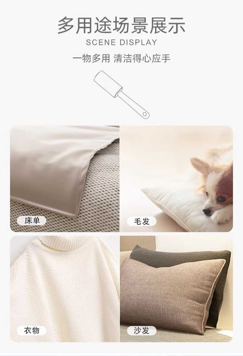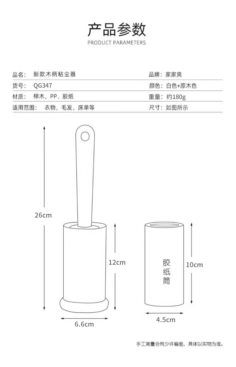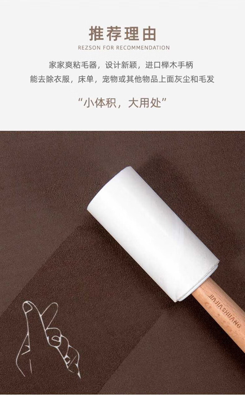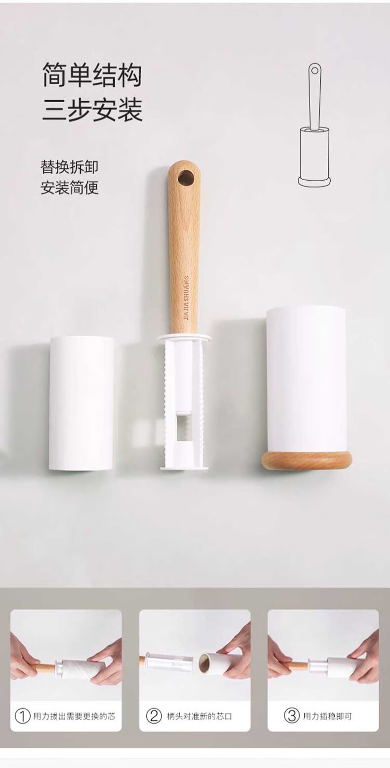 家家爽 QG347 木柄粘毛器滚筒刷可撕式替换卷纸衣服黏毛工具