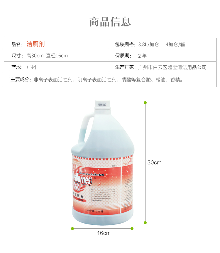 超宝 DFF018 厕所清洗剂 3.78L 4桶/箱