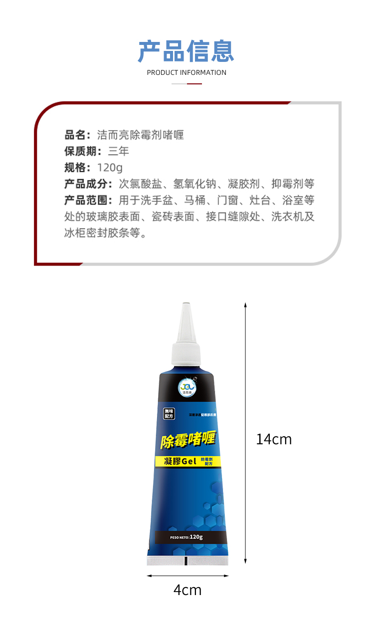 洁而亮 JEL048 除霉啫喱120g/瓶