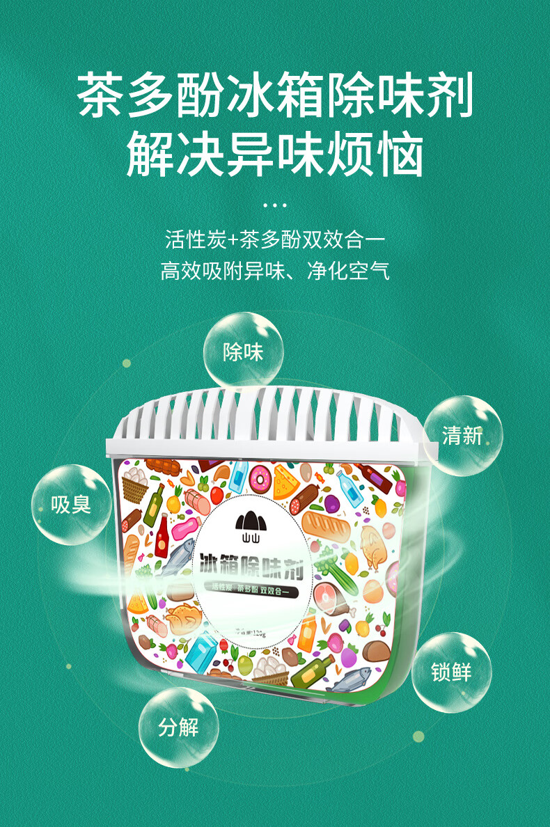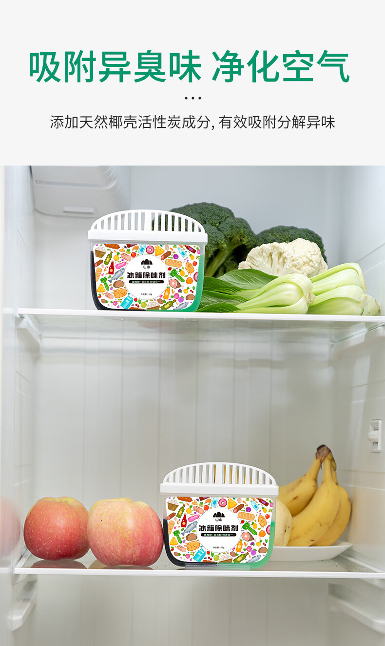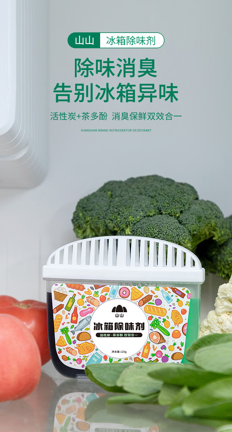 山山 冰柜除味剂 120g*1盒 活性炭茶多酚双效去异味冰柜除味盒祛味消臭保鲜神器 WSX0073