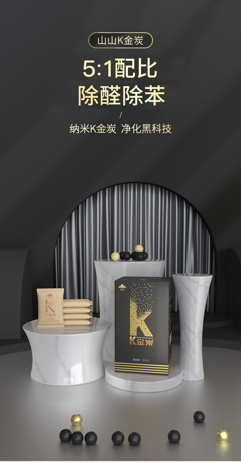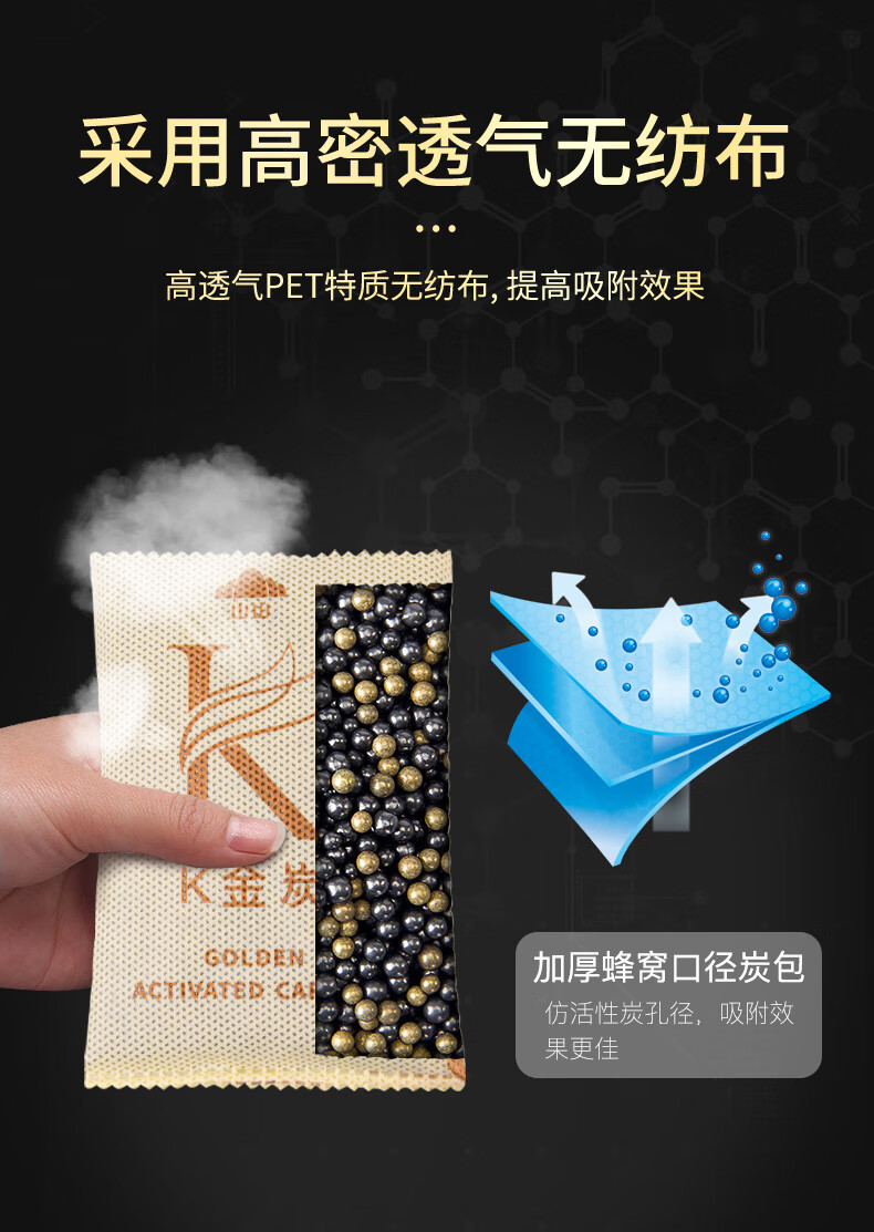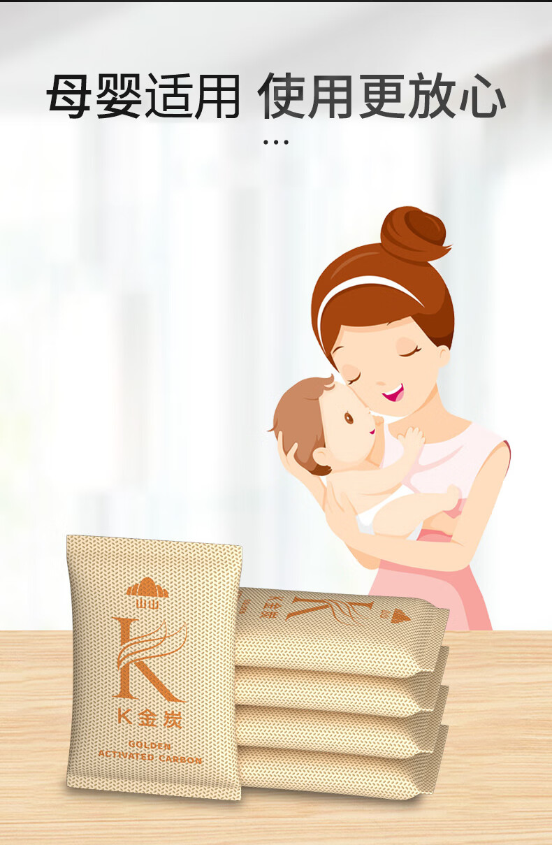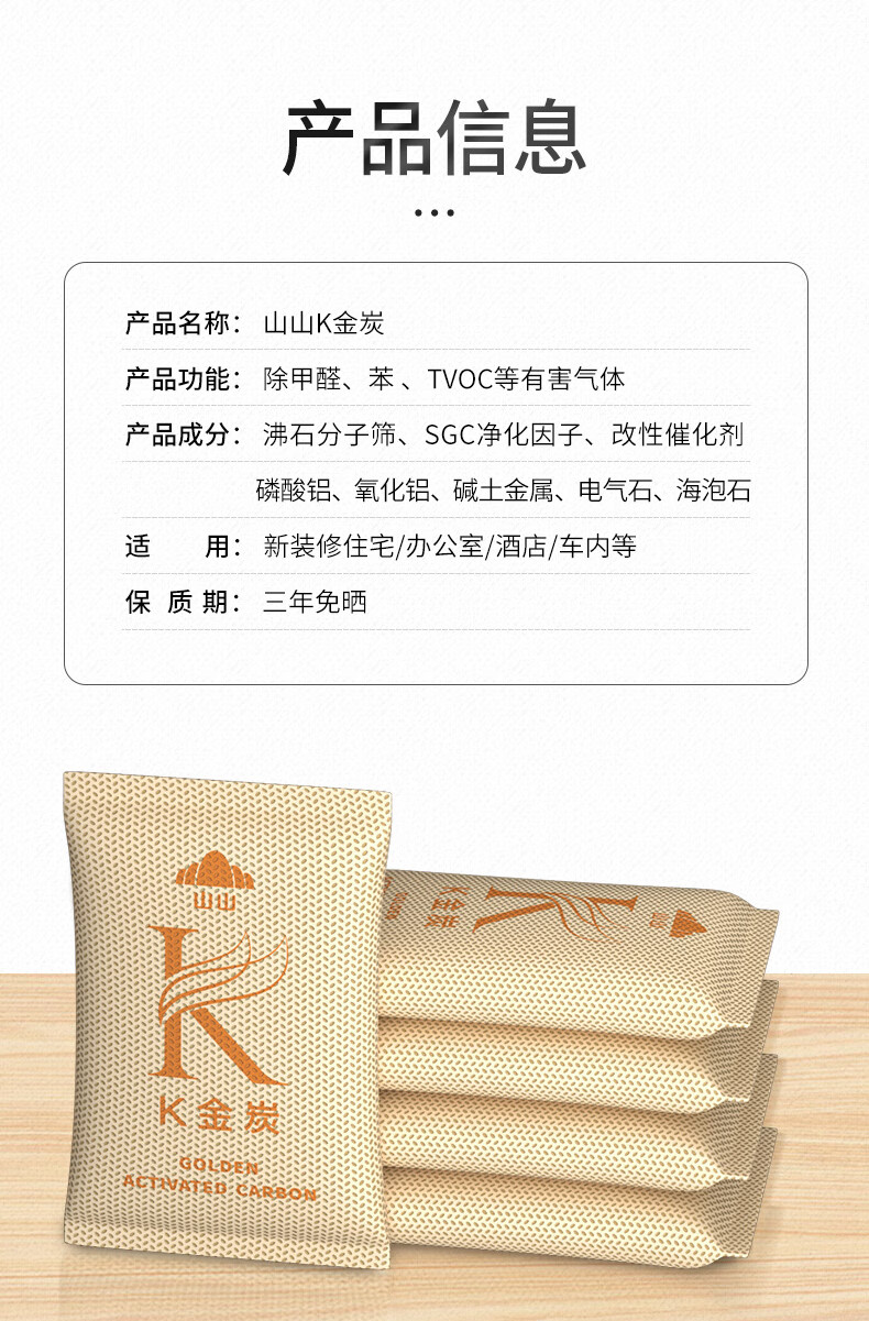 山山 K金炭1kg(10包)1检测盒 活性炭包室内除醛除异味新房装修去甲醛去味竹炭汽车净化除味免晒 WSX0041