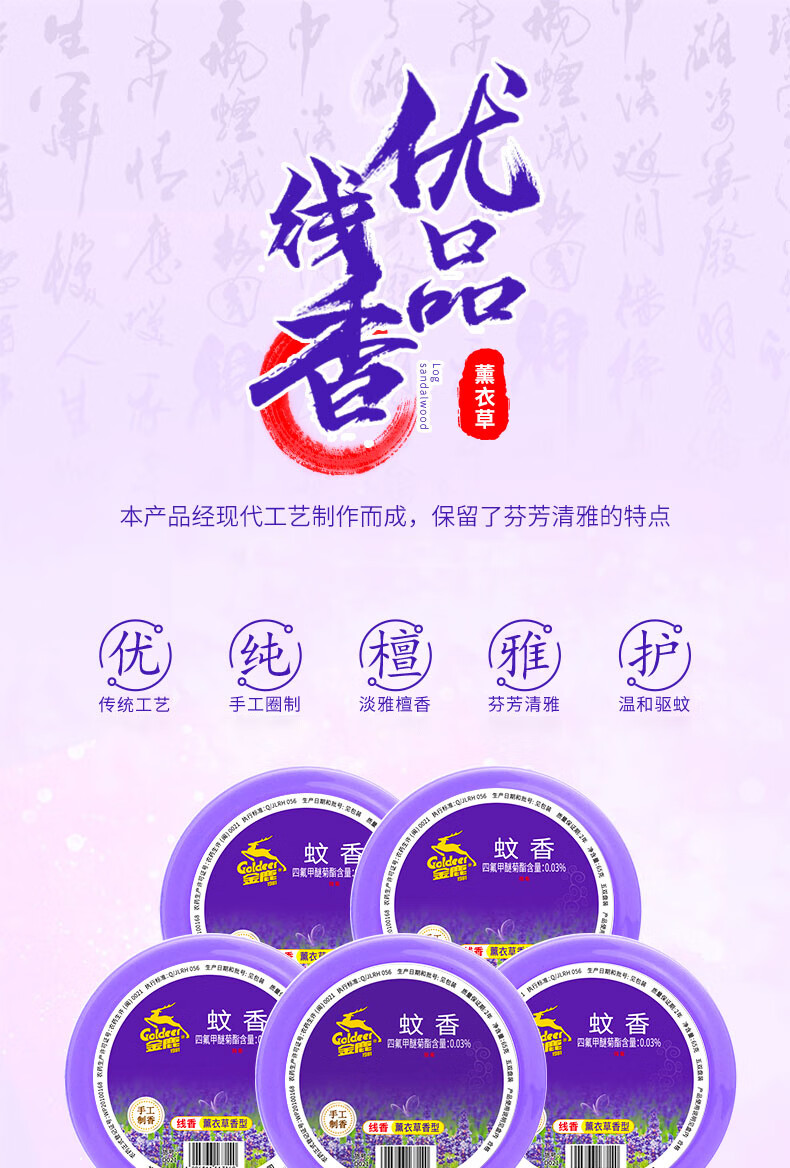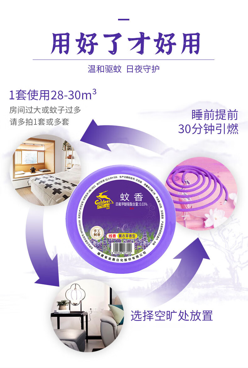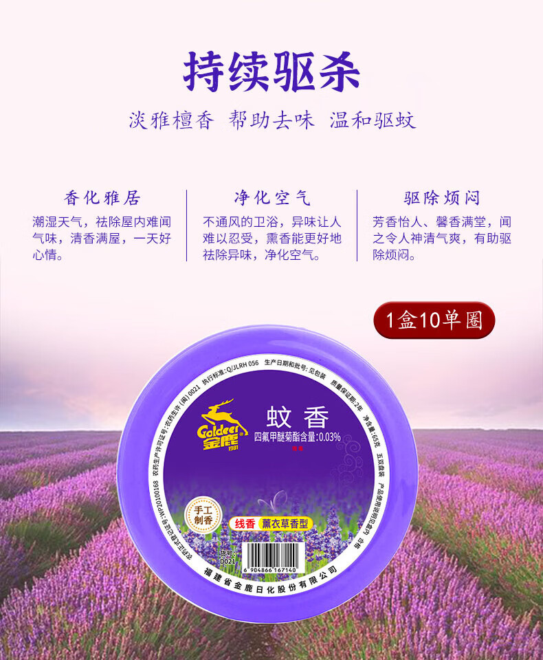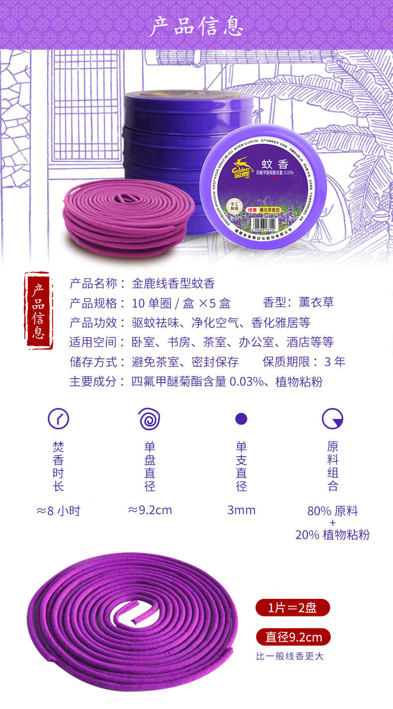 金鹿(Goldeer 1981) D021 蚊香薰衣草香型盘香线香驱蚊灭蚊熏香去味卫生香 10单圈/盒