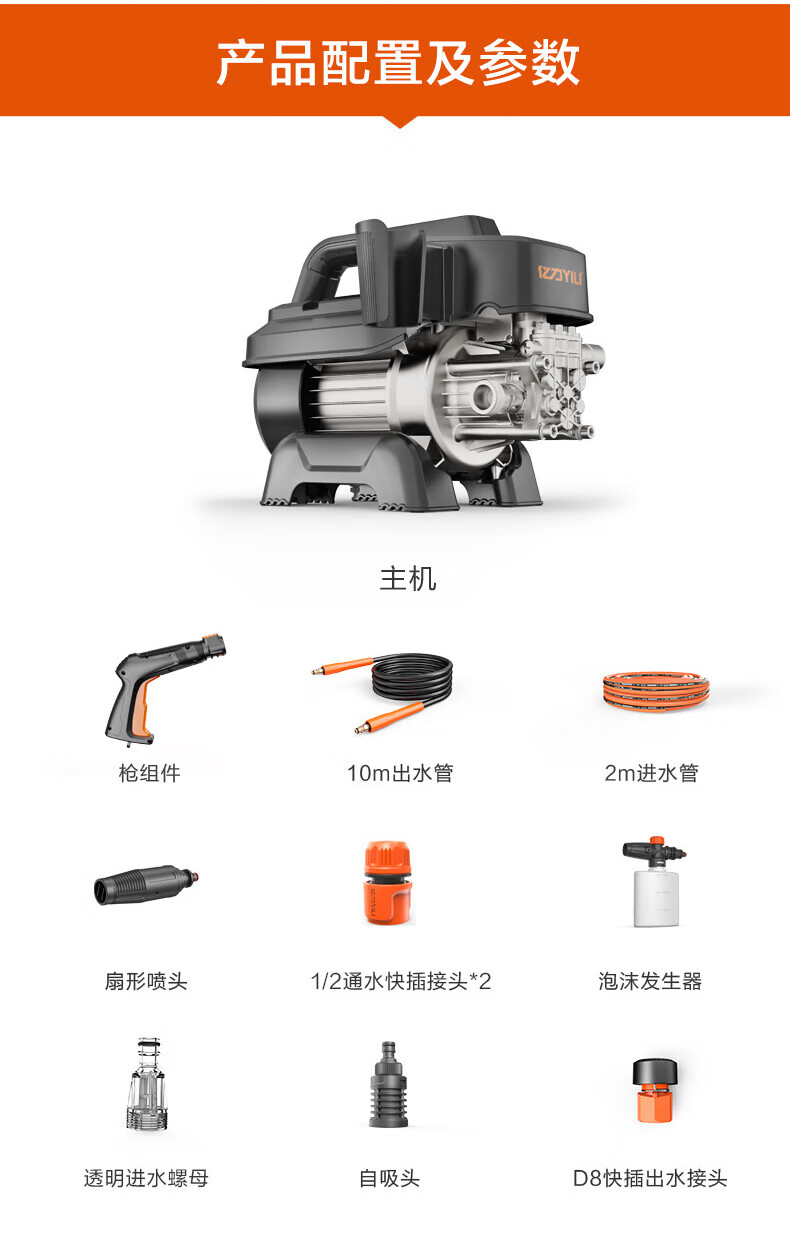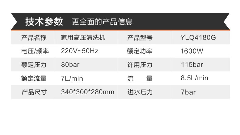 亿力 高压洗车机220V大功率便携式水枪清洗机YLQ4180G T4 PLUS