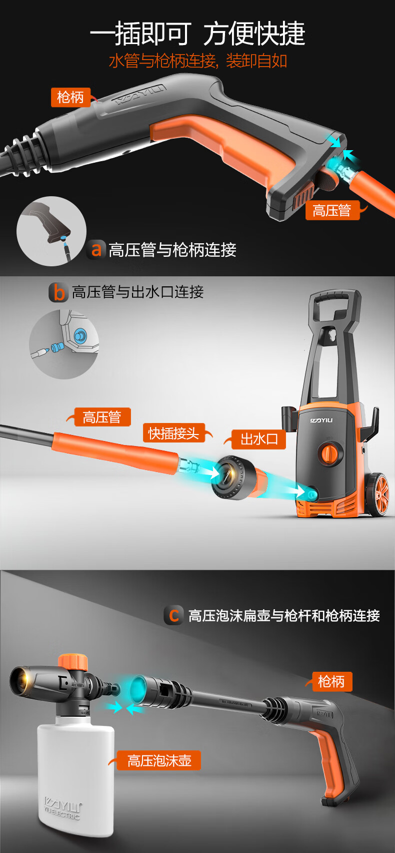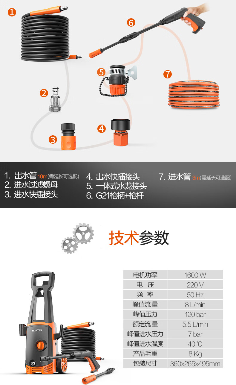 亿力 220v高压清洗机刷车泵1600w洗车泵便携水枪 YLQ4430H-120C