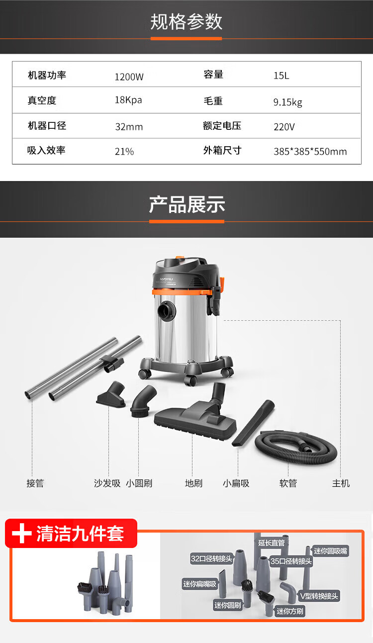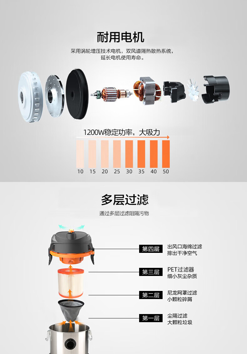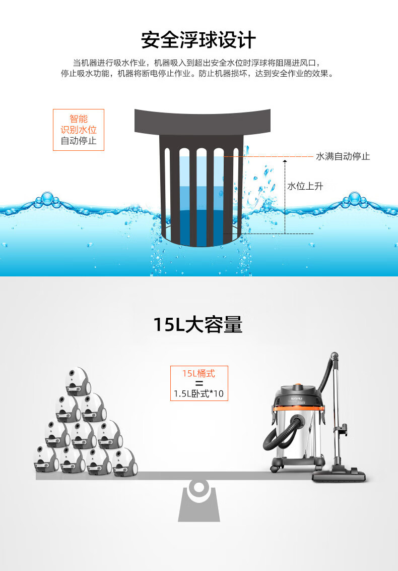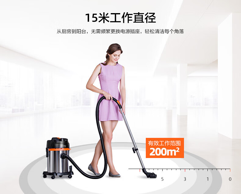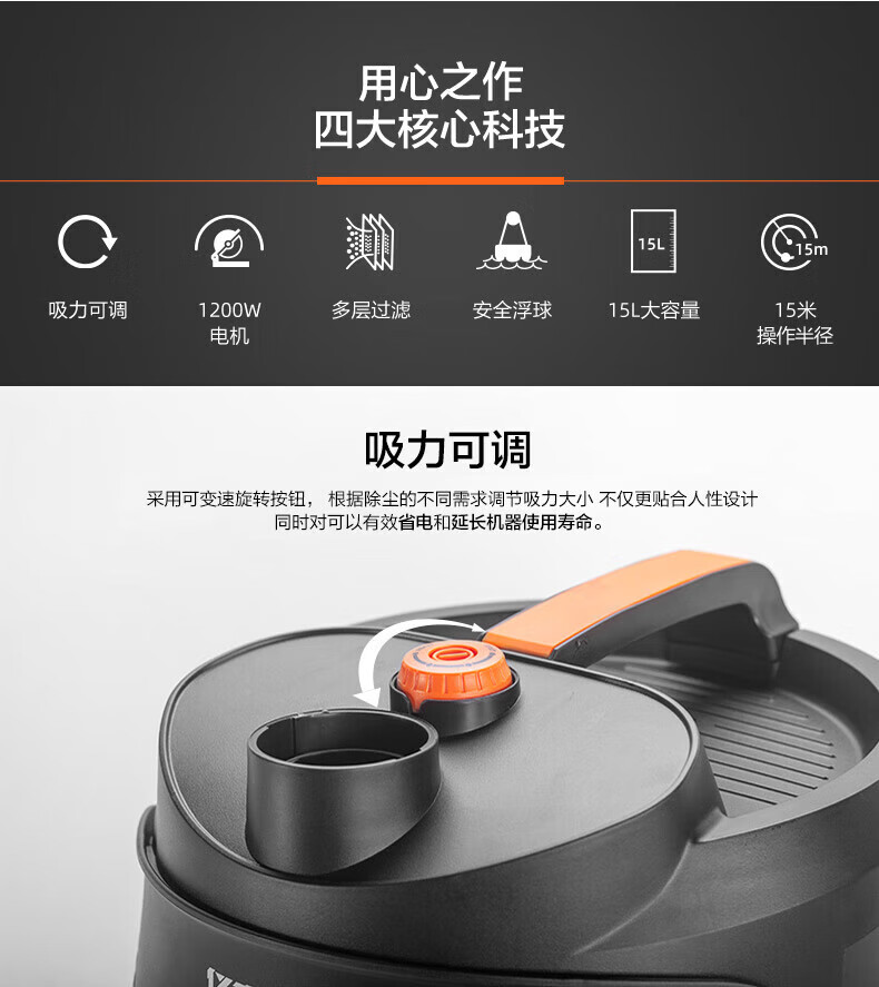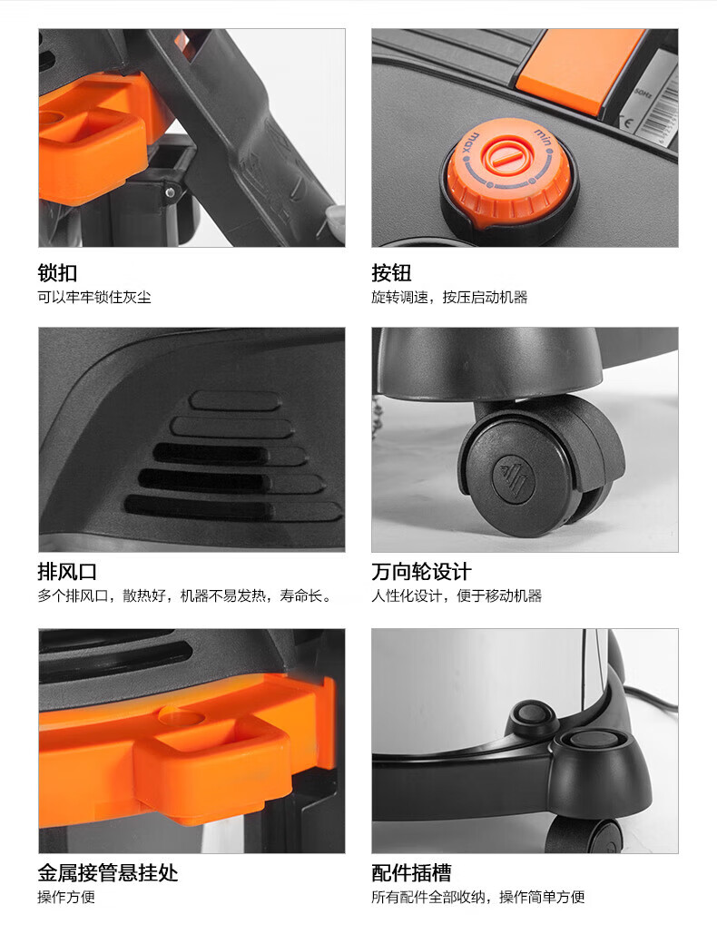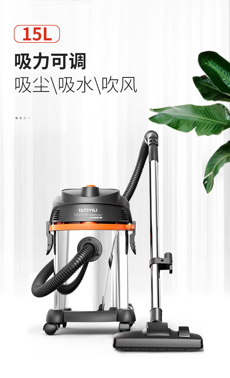 亿力 YLW6201E 小型桶式吸尘器干湿吹三用吸尘机 15L可调速除尘版1200W