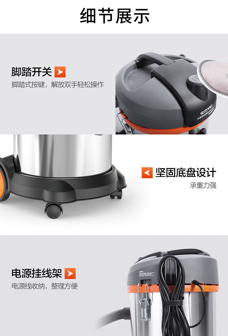 亿力 工业用吸尘器大功率工厂车间大吸力装修吸尘吸水机酒店用YL6202-15LP