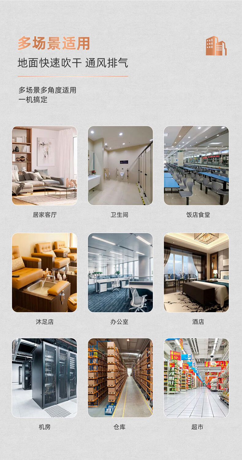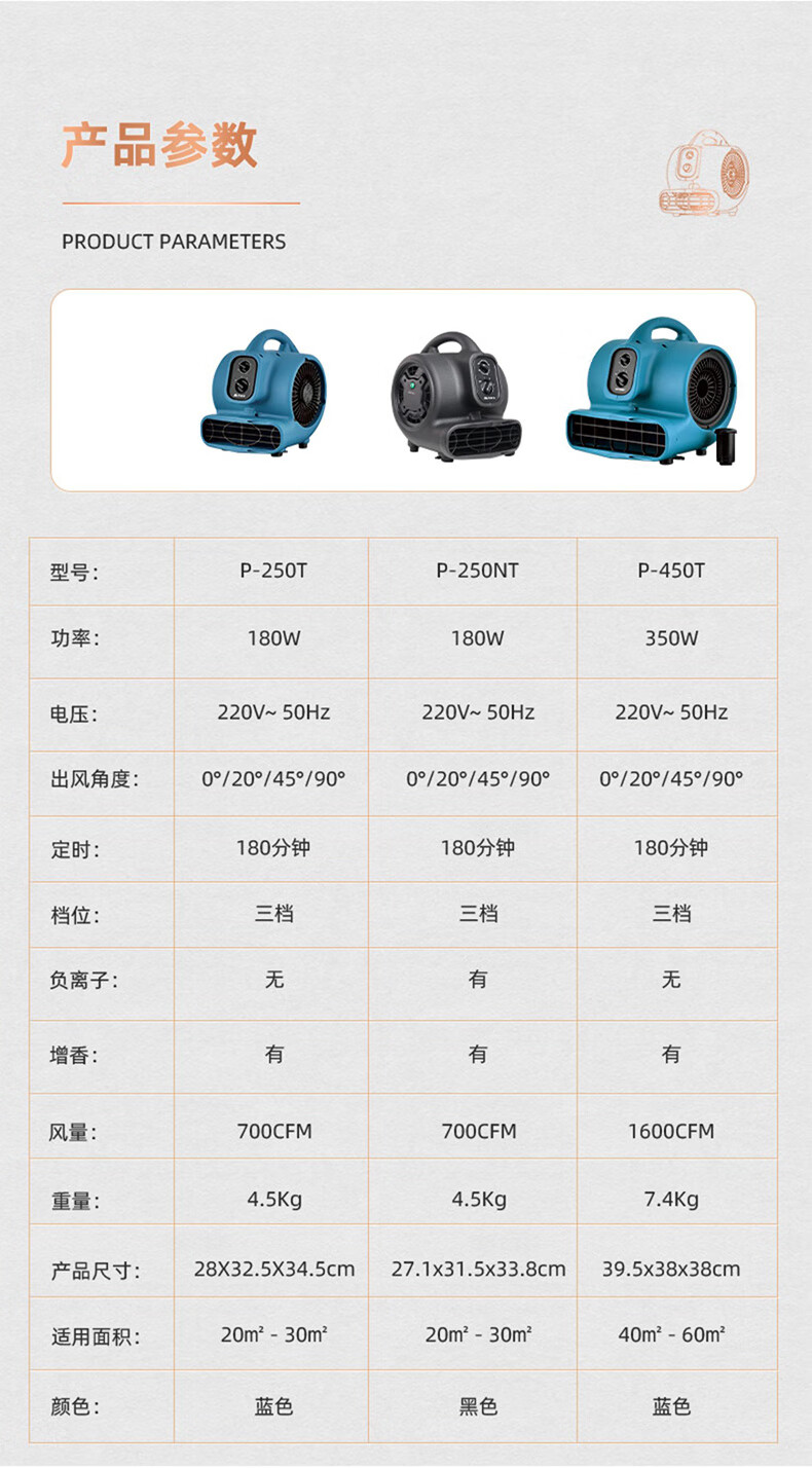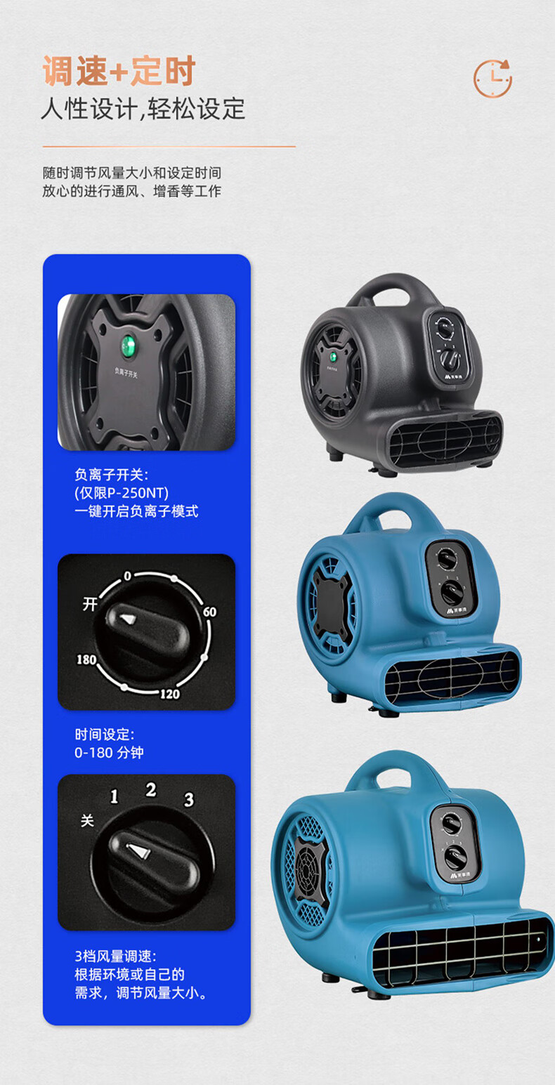 美事滴 吹地机酒店卫生间快速吹干地面负离子香风机P-250T 蓝色180W