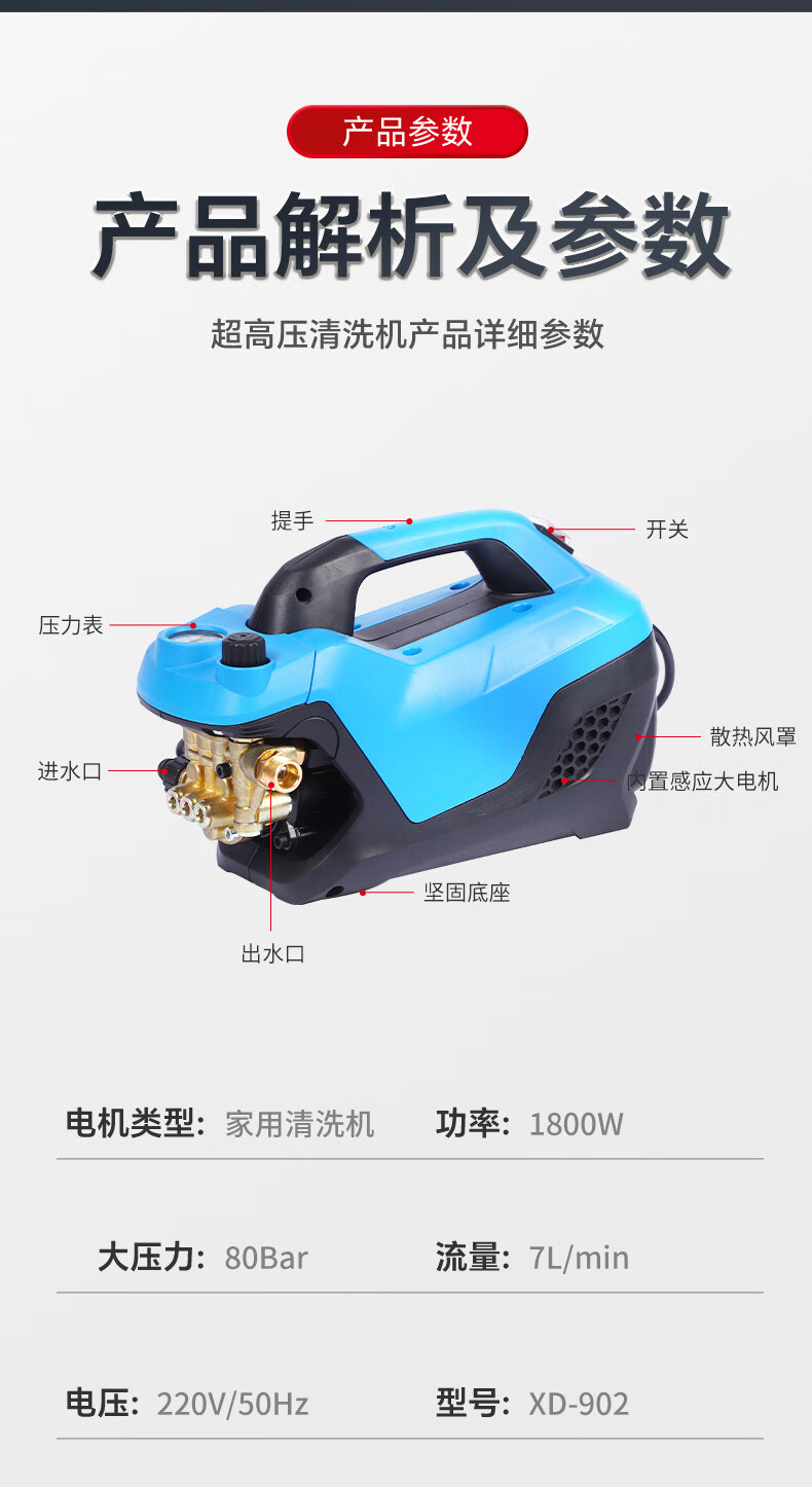 兴地 XD-902 便携式高压清洗机220V洗车机高压水枪手提小型清洗机