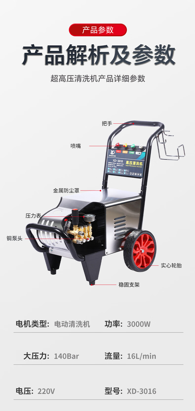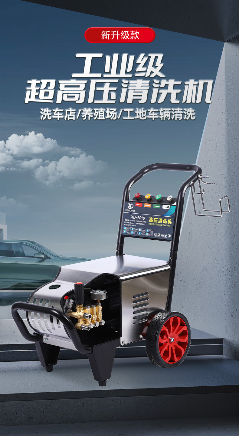 兴地 XD-3016 商用高压洗车机铜线电机洗车店养殖场地面墙面清洗 3KW