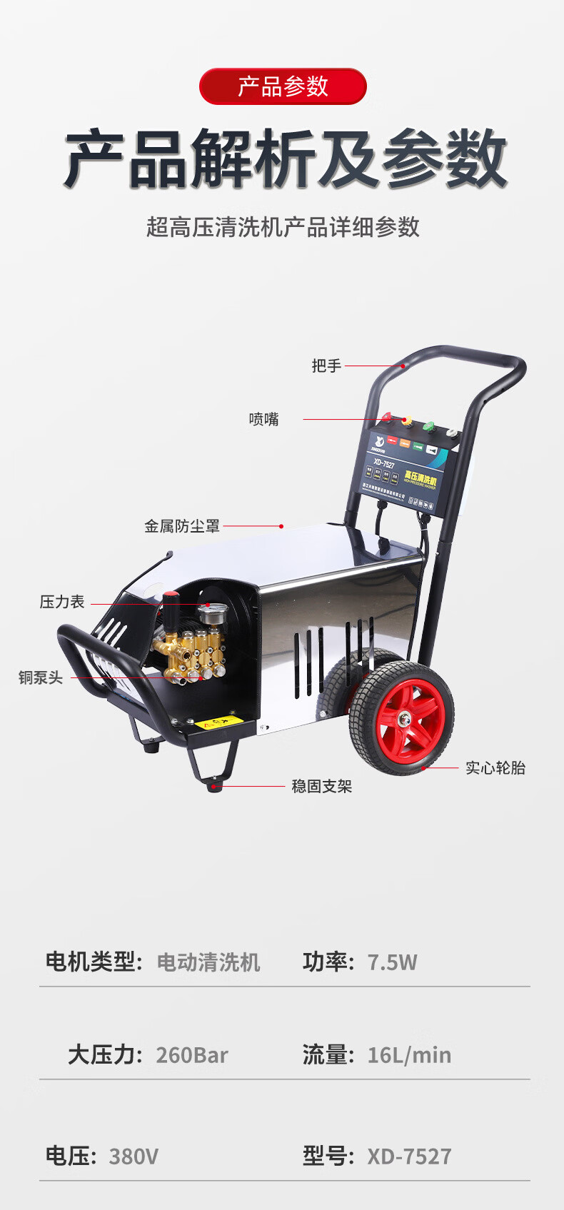 兴地 XD-7527 商用全自动清洗机工业洗车机高压除锈移动冲洗设备 7.5kw