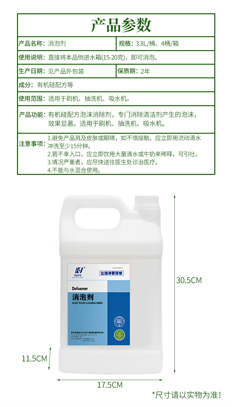 科洁尔 LG-216 消泡剂 商用酒店宾馆地毯污水处理除泡剂化泡剂 3.8L/桶