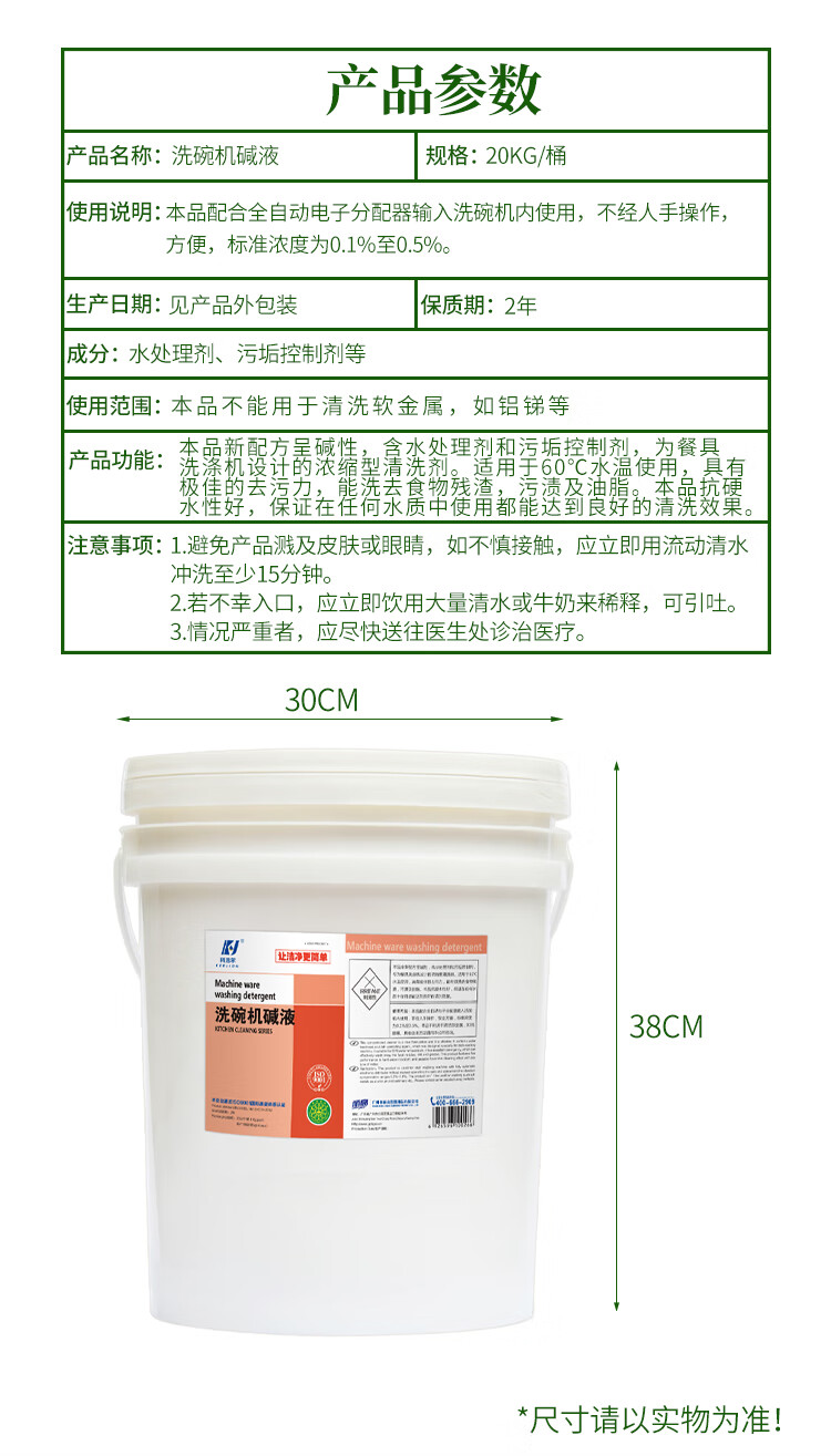 科洁尔 LG-302 洗碗机碱液 商用洗碗机食堂酒店学校餐具油污残渣清洁 20kg/桶