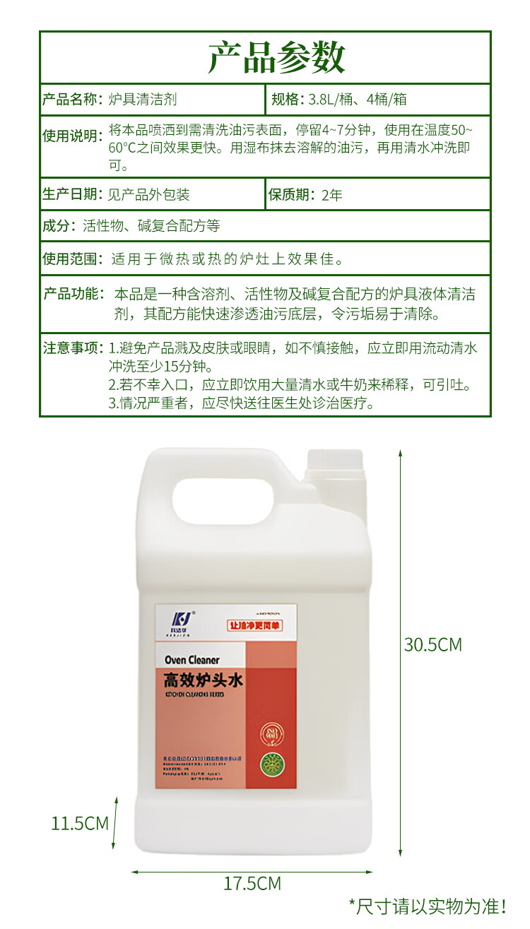 科吉尔 LG-308 炉具清洁剂 酒店食堂餐厅油烟罩灶台炉具重油污渍清洁除垢 3.8L/桶