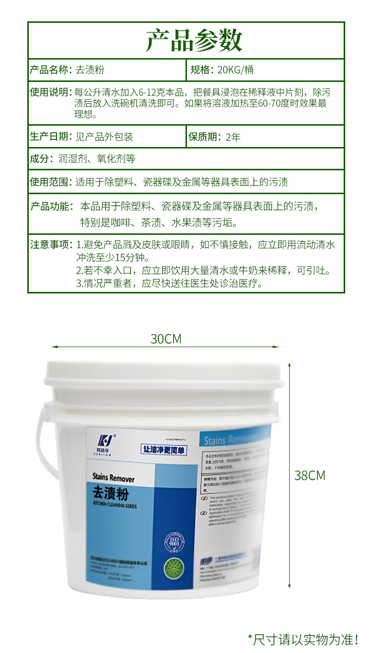 科洁尔 LG-312 去渍粉 餐具金属瓷盘油污污渍咖啡茶渍浸泡清洗污垢 20kg/桶