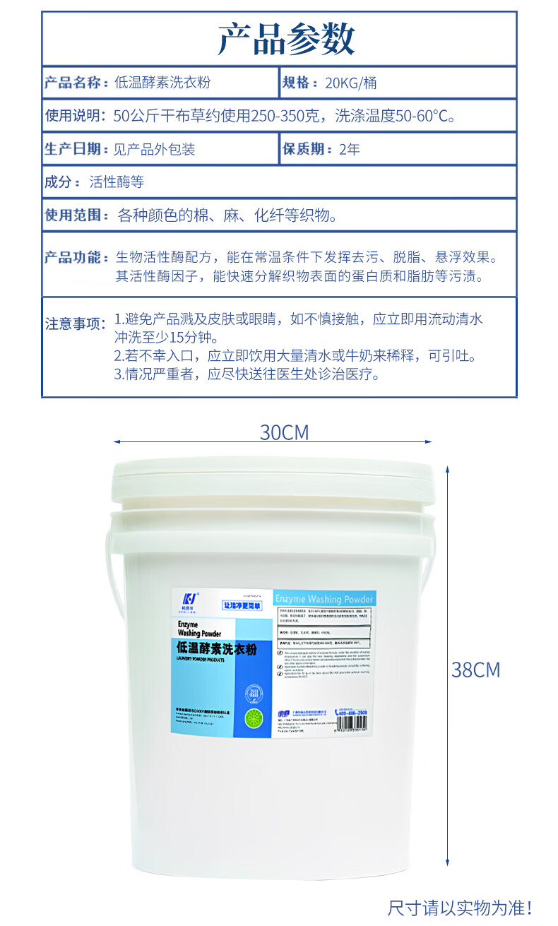科洁尔 LG-109 低温酵素洗衣粉 冷水低温速溶洗衣房干洗店酒店宾馆桶装 20kg/桶