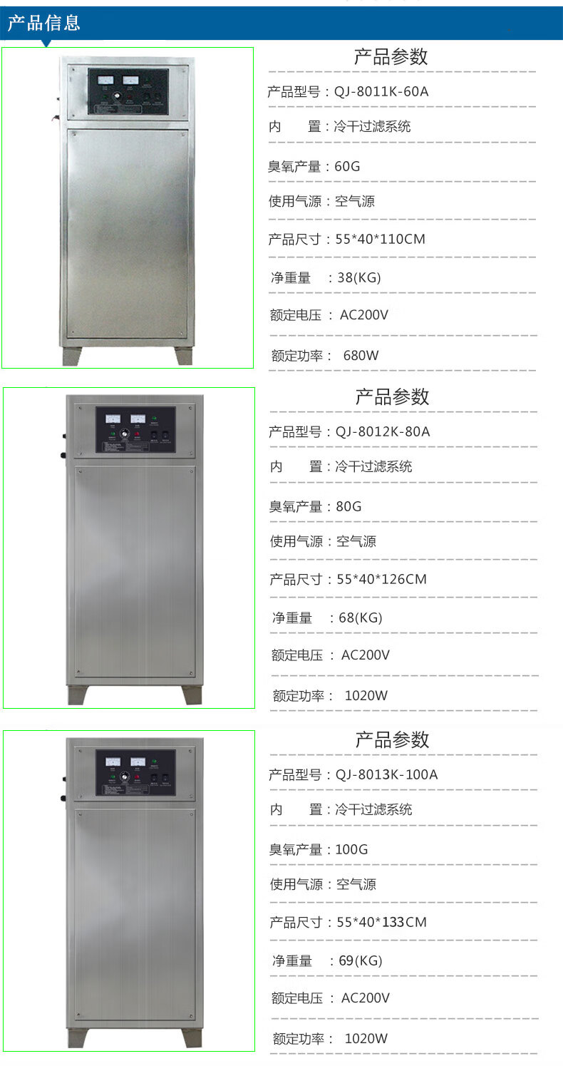 铨聚 QJ-8012K-80G 大型臭氧发生器臭氧机空间净化养殖厂杀菌消毒 80g