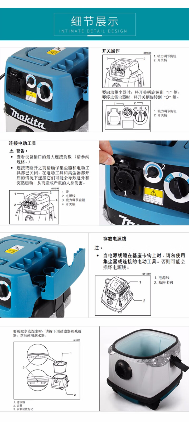 牧田(MAKITA)VC1310L 工业吸尘器干湿两用 工厂商用吸尘器 13L含吸尘器组件