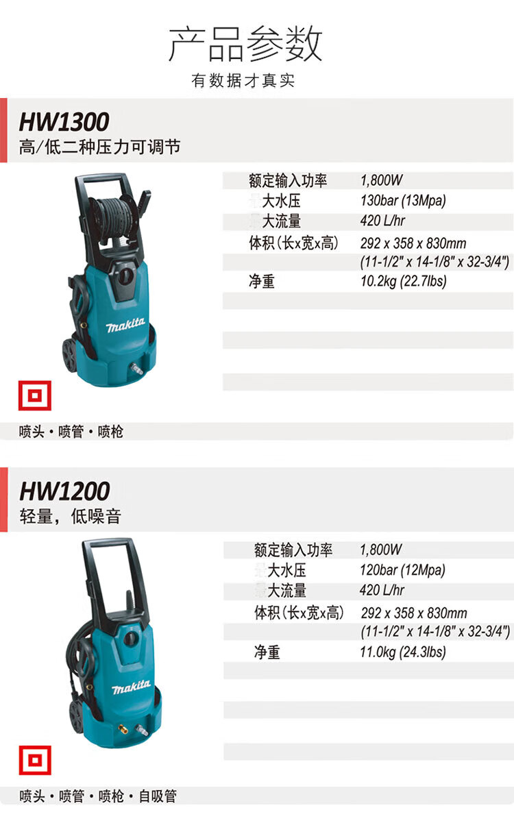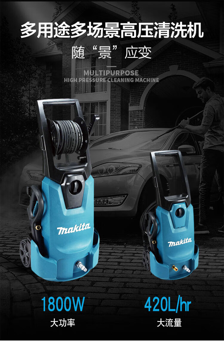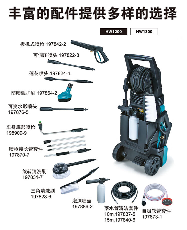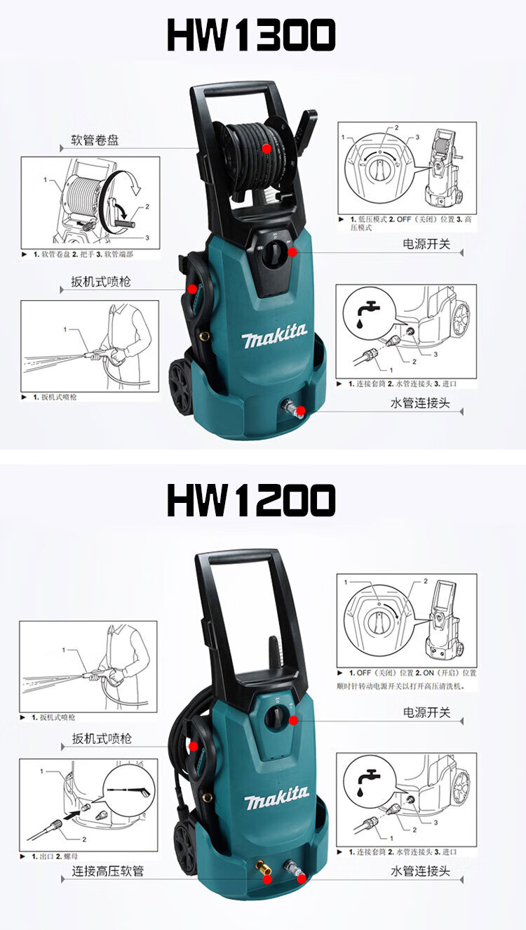 牧田(makita)HW1200 便捷高压清洗机可调节式地面洗车清洗水枪