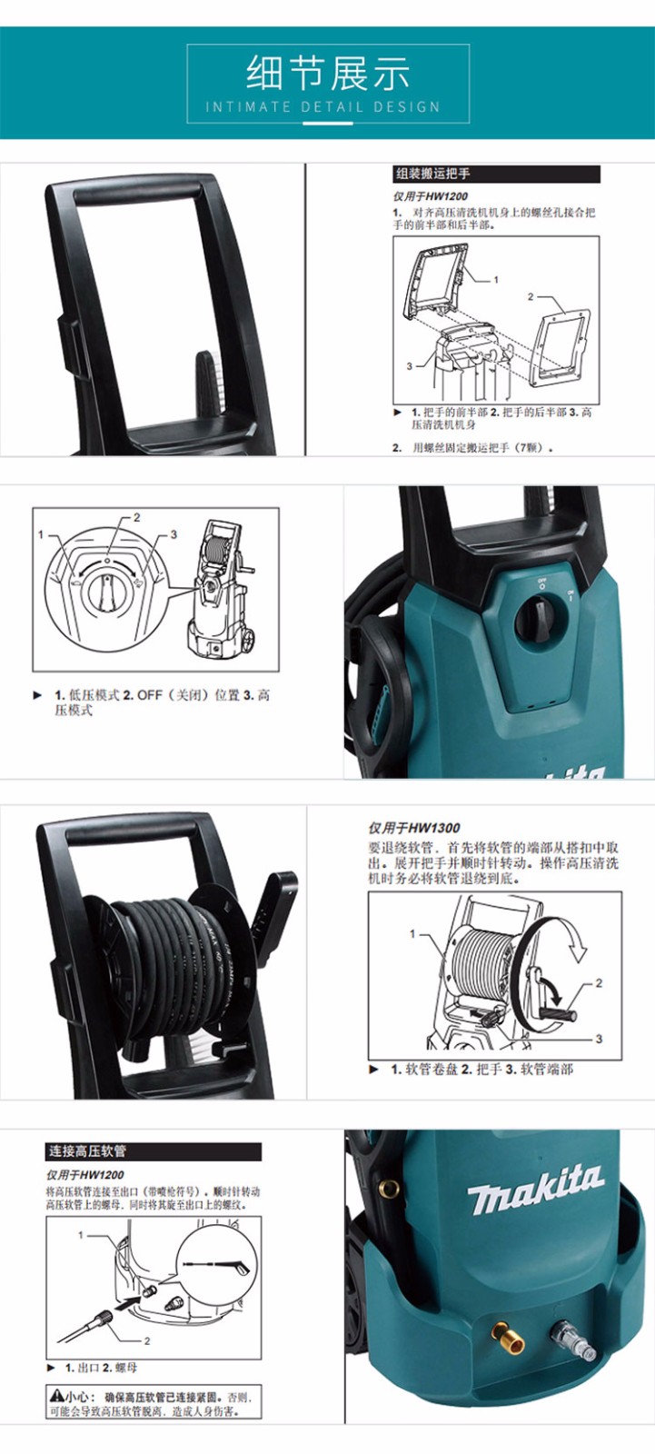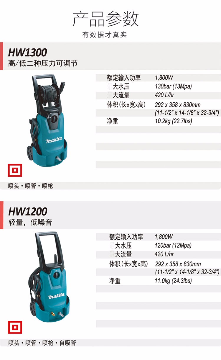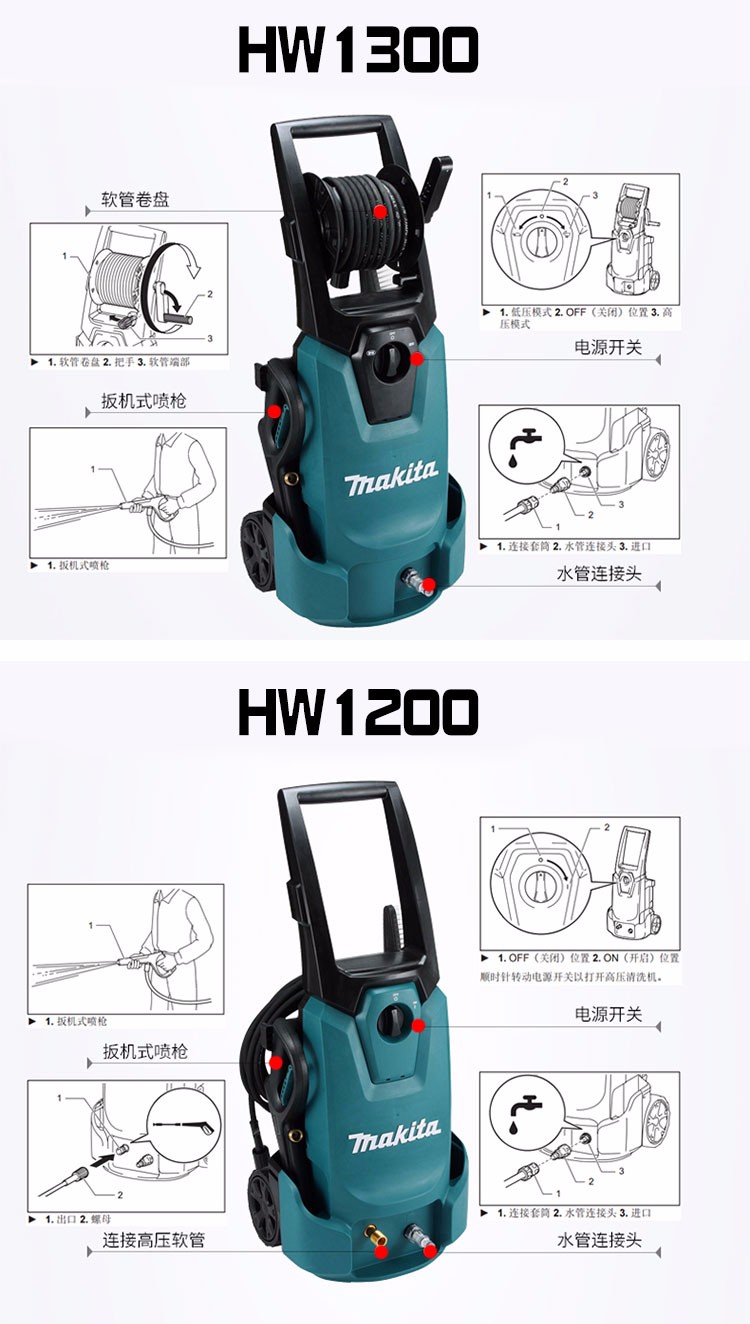 牧田(MAKITA)HW1300 高压清洗机13兆帕 物业环卫地面冲洗