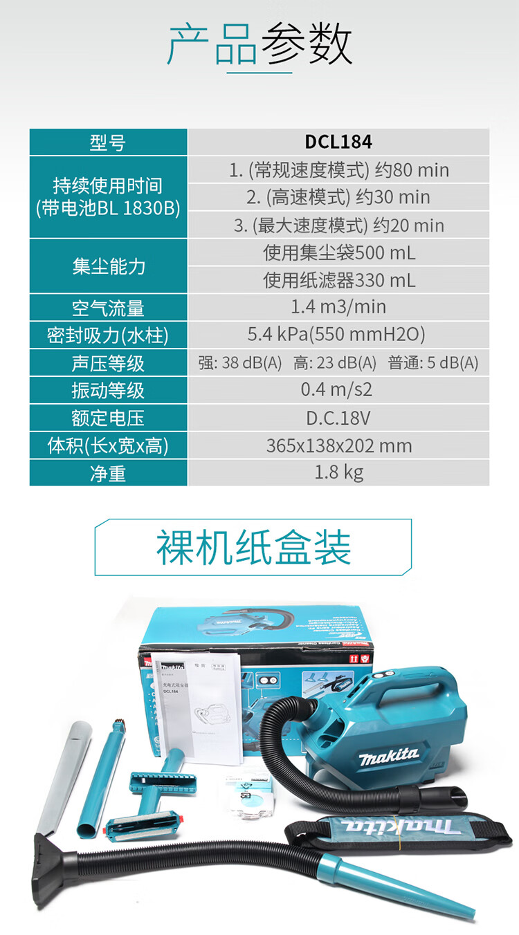 牧田(makita) DCL184RFX 锂电池吹风机大型酒店机场别墅保洁无绳清洁机器 一电一充18V3.0AH