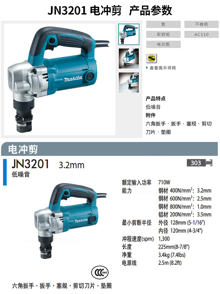 牧田(MAKITA)JN3201插电电动剪曲线铁皮钢板铝材钢材电冲剪