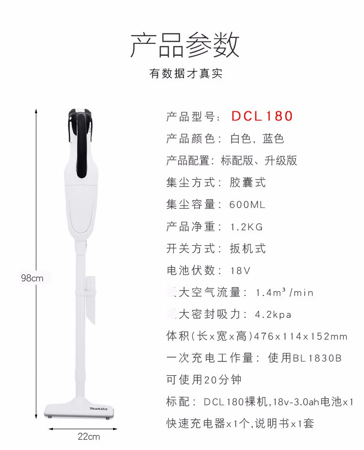 牧田(MAKITA)DCL180FRF 酒店宾馆手持轻便式吸尘器 18V锂电池胶囊式吸尘器