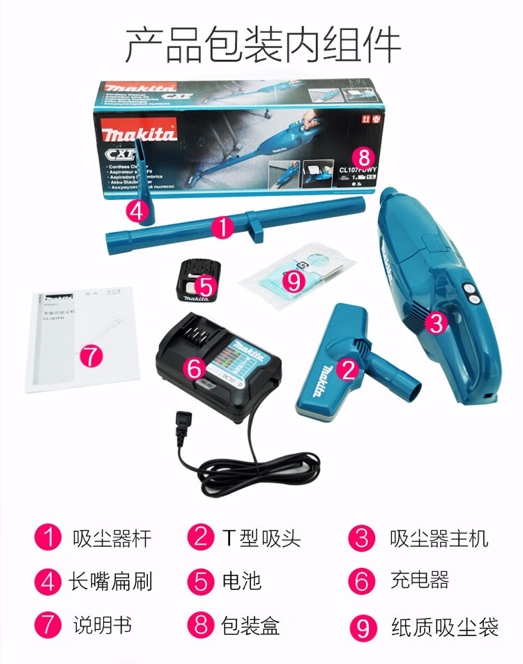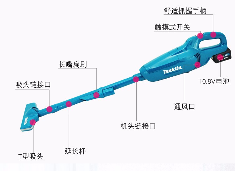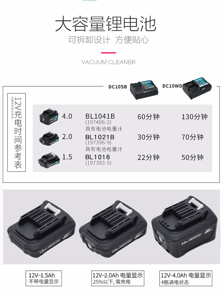 牧田(MAKITA)CL107FDWMW 酒店宾馆手持轻便式吸尘器 12V锂电池集尘袋式吸尘器