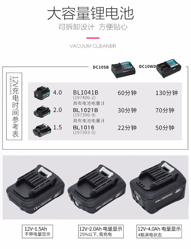 牧田(MAKITA)CL108FDWAW 酒店宾馆手持轻便式吸尘器 12V锂电池集尘袋式吸尘器