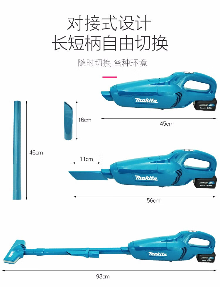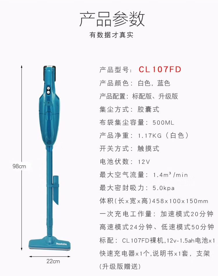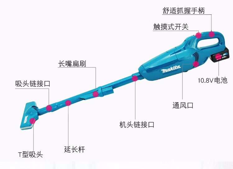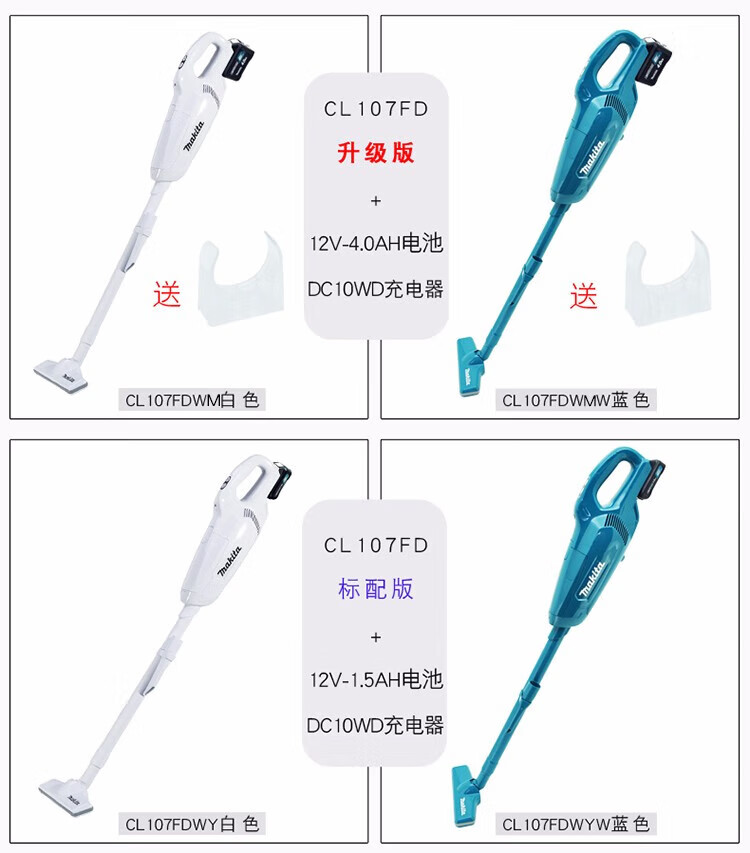 牧田(MAKITA)CL107FDWY 酒店宾馆手持轻便式吸尘器 12V锂电池集尘袋式吸尘器 蓝色