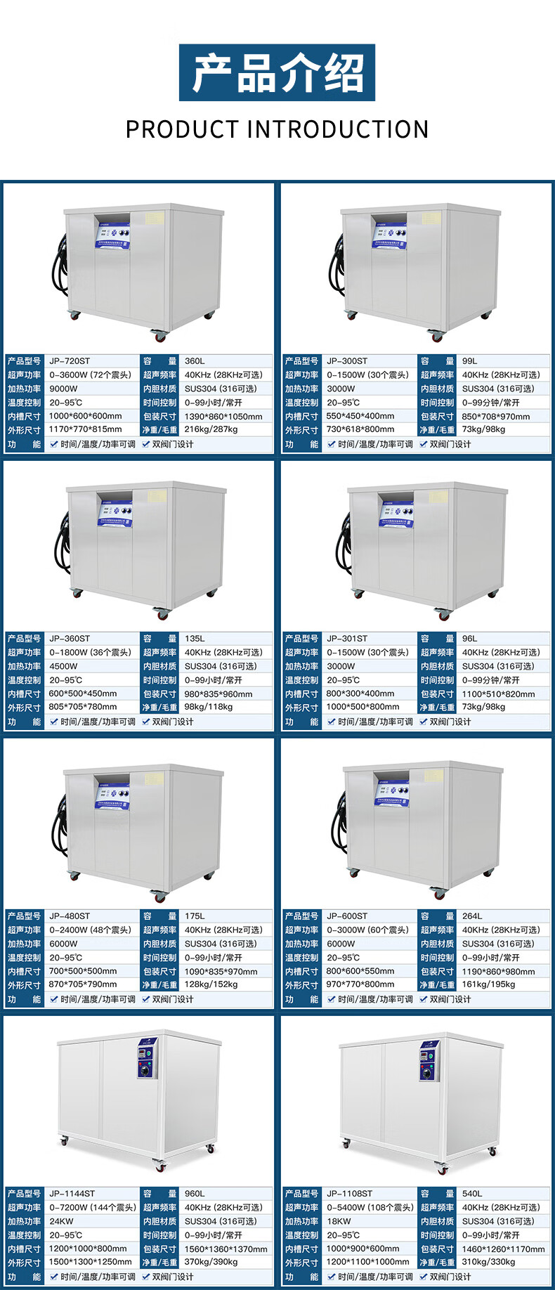 洁盟 JP-1108ST 超声波大功率清洗机实验室仪器五金线路板除油除锈清洁 540L