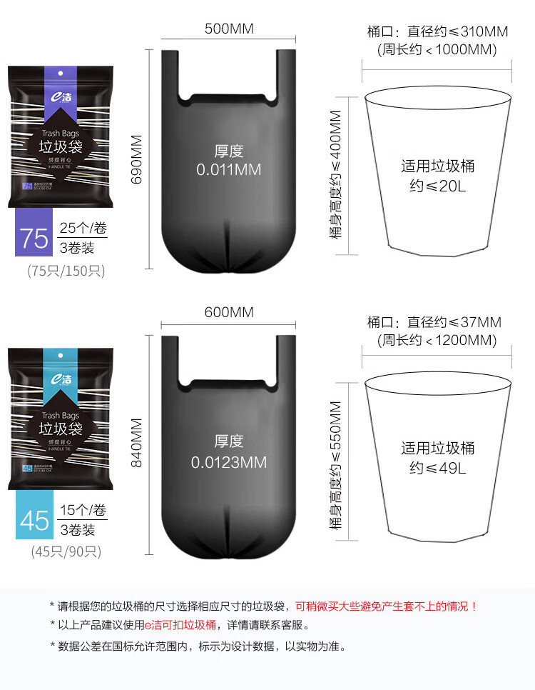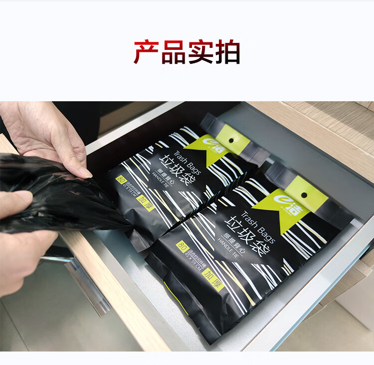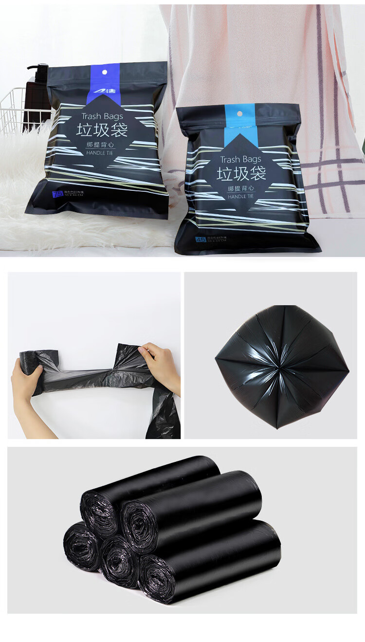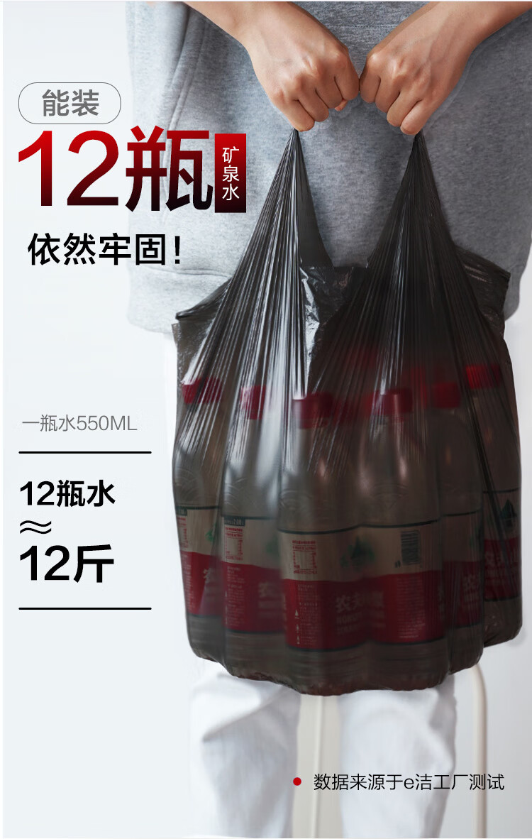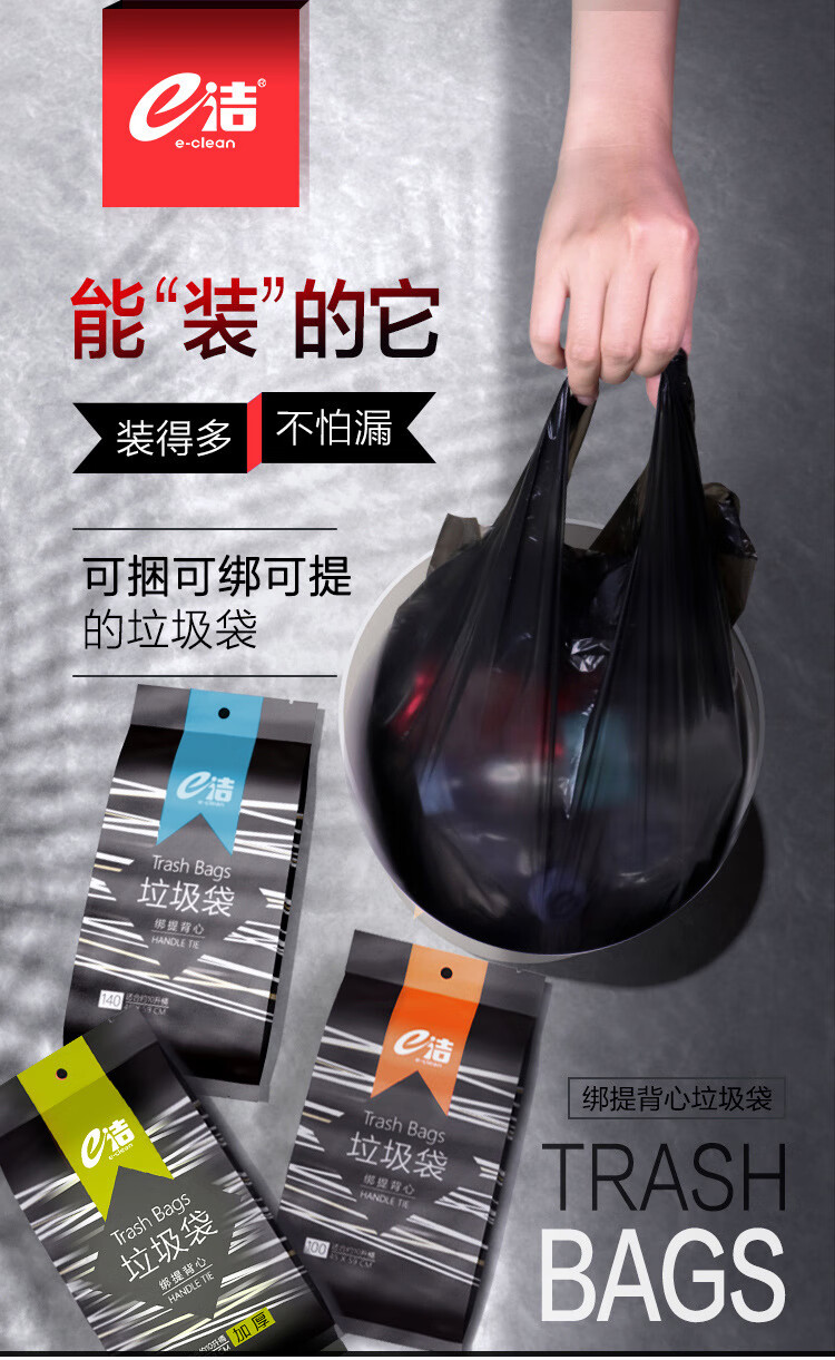 e洁 背心连卷垃圾袋45*59cm手提式大容量厨卫干湿分类 加厚黑色1.2丝HT124559-80共80只