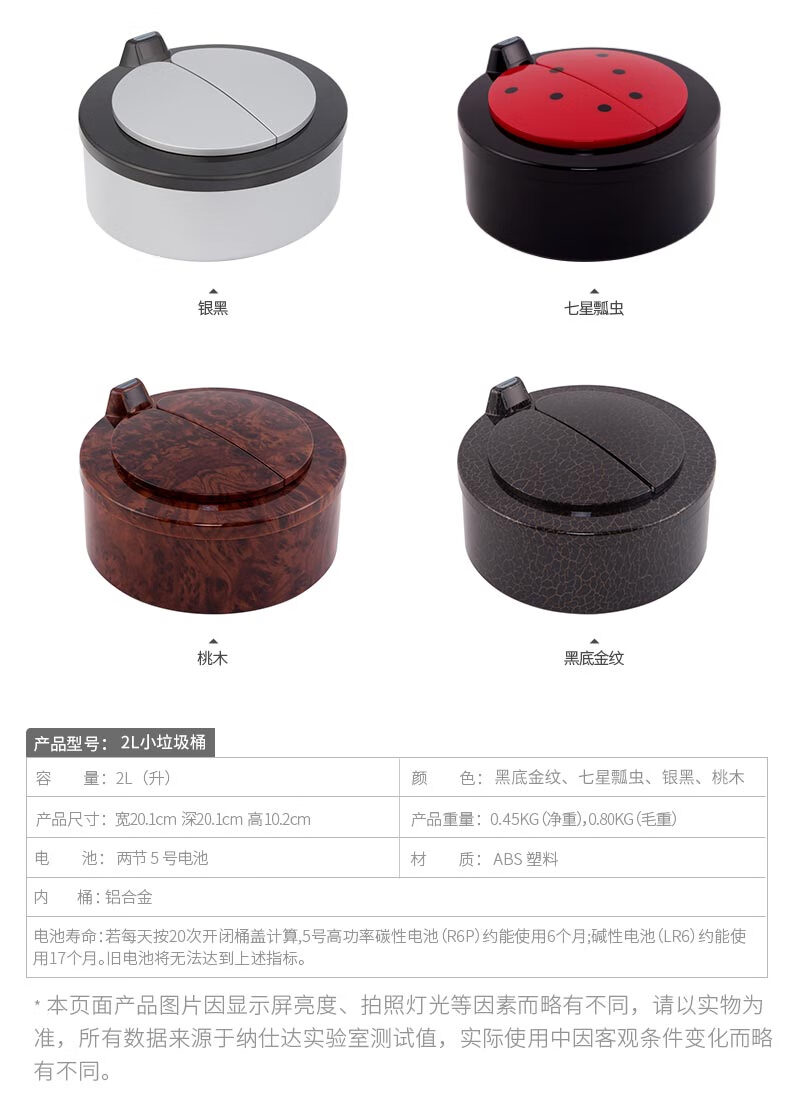NST纳仕达DZT-2-18M 智能感应垃圾桶桌面迷你小垃圾桶收纳桶烟灰缸 七星瓢虫2L