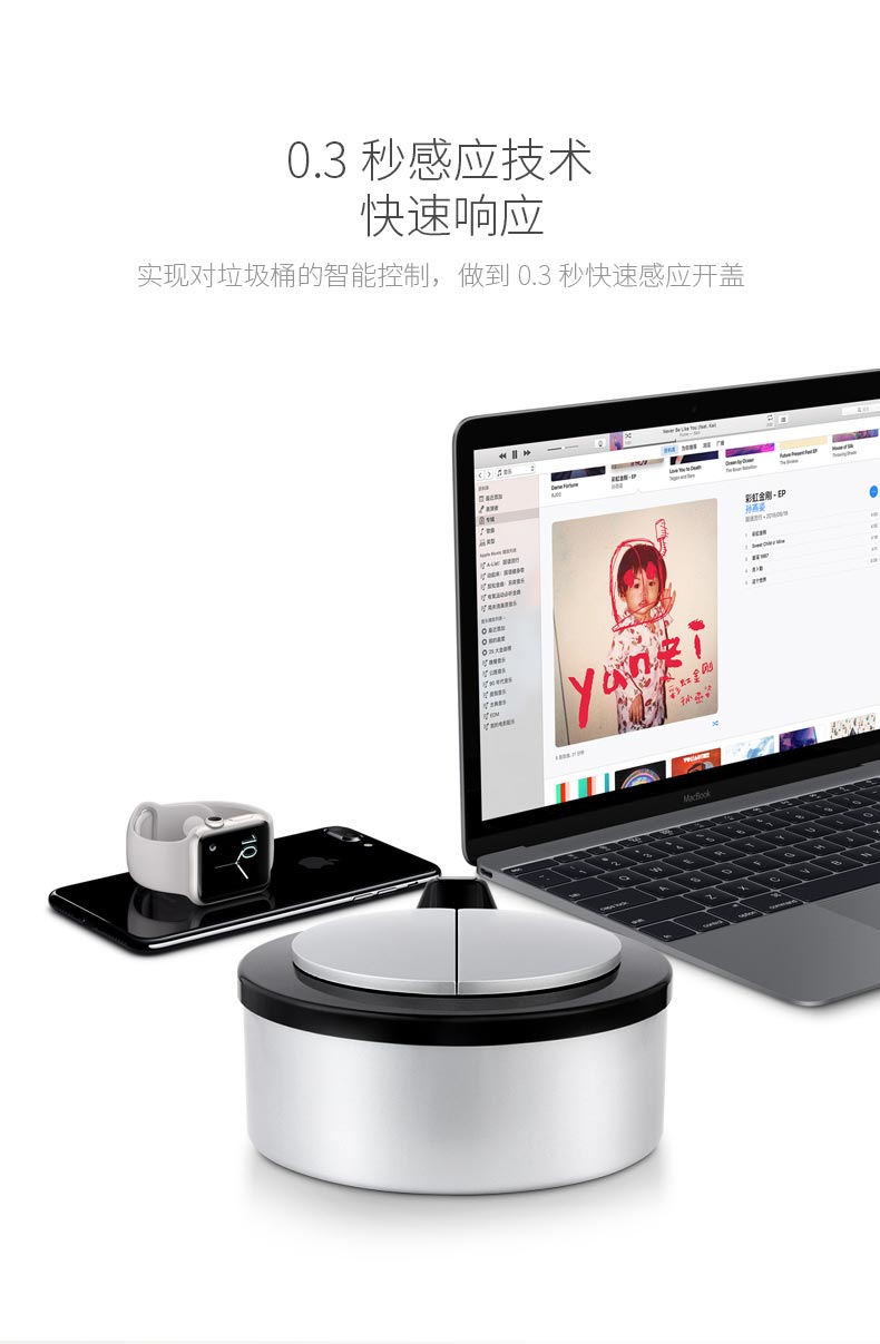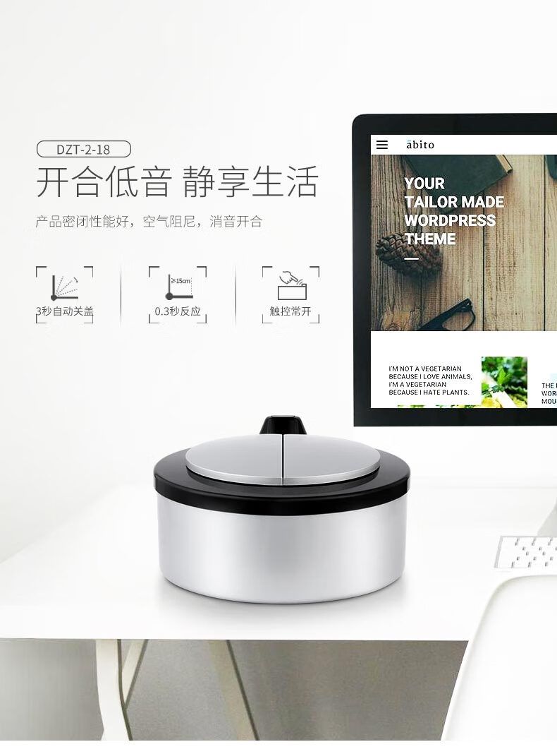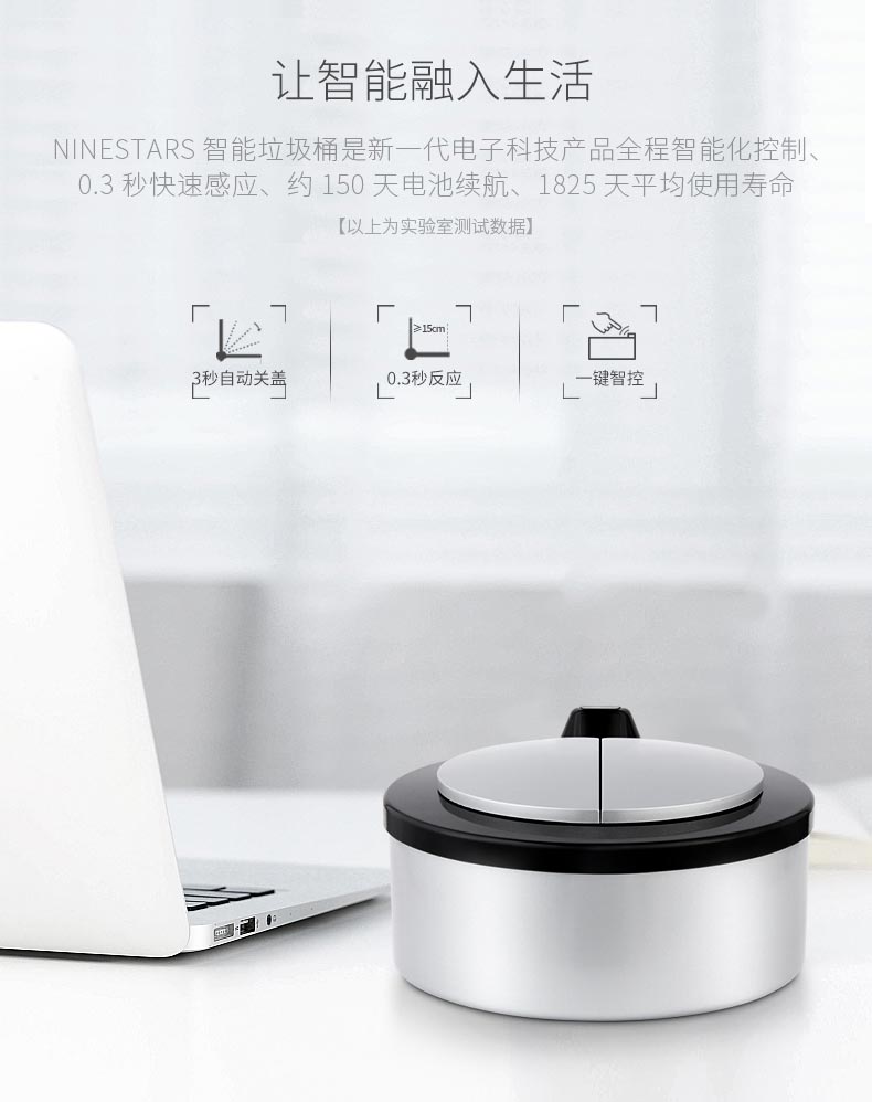 NST纳仕达DZT-2-18M 智能感应垃圾桶桌面迷你小垃圾桶收纳桶烟灰缸 银黑2L