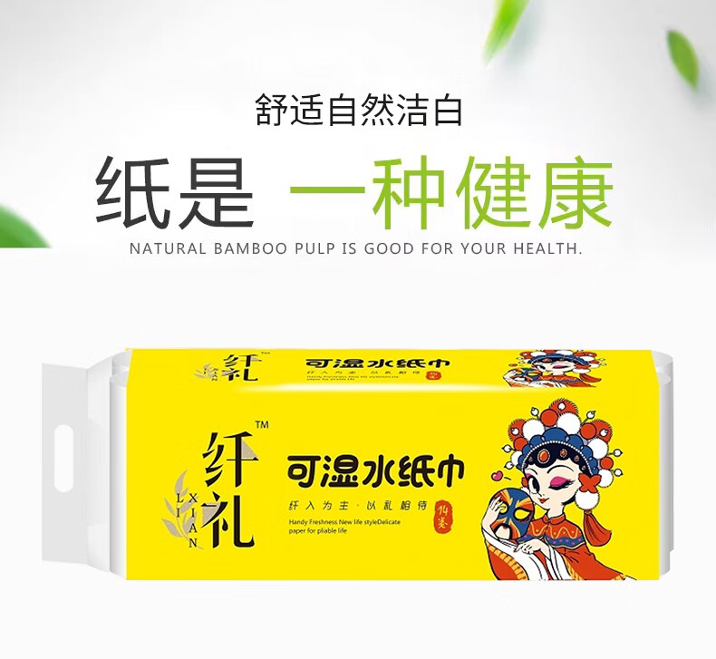 纤礼 1561 纤礼脸谱可湿水原生木浆卫生纸长卷纸亲肤柔软纸巾手纸厕纸实惠装 1300克10卷/提*5提(50卷)