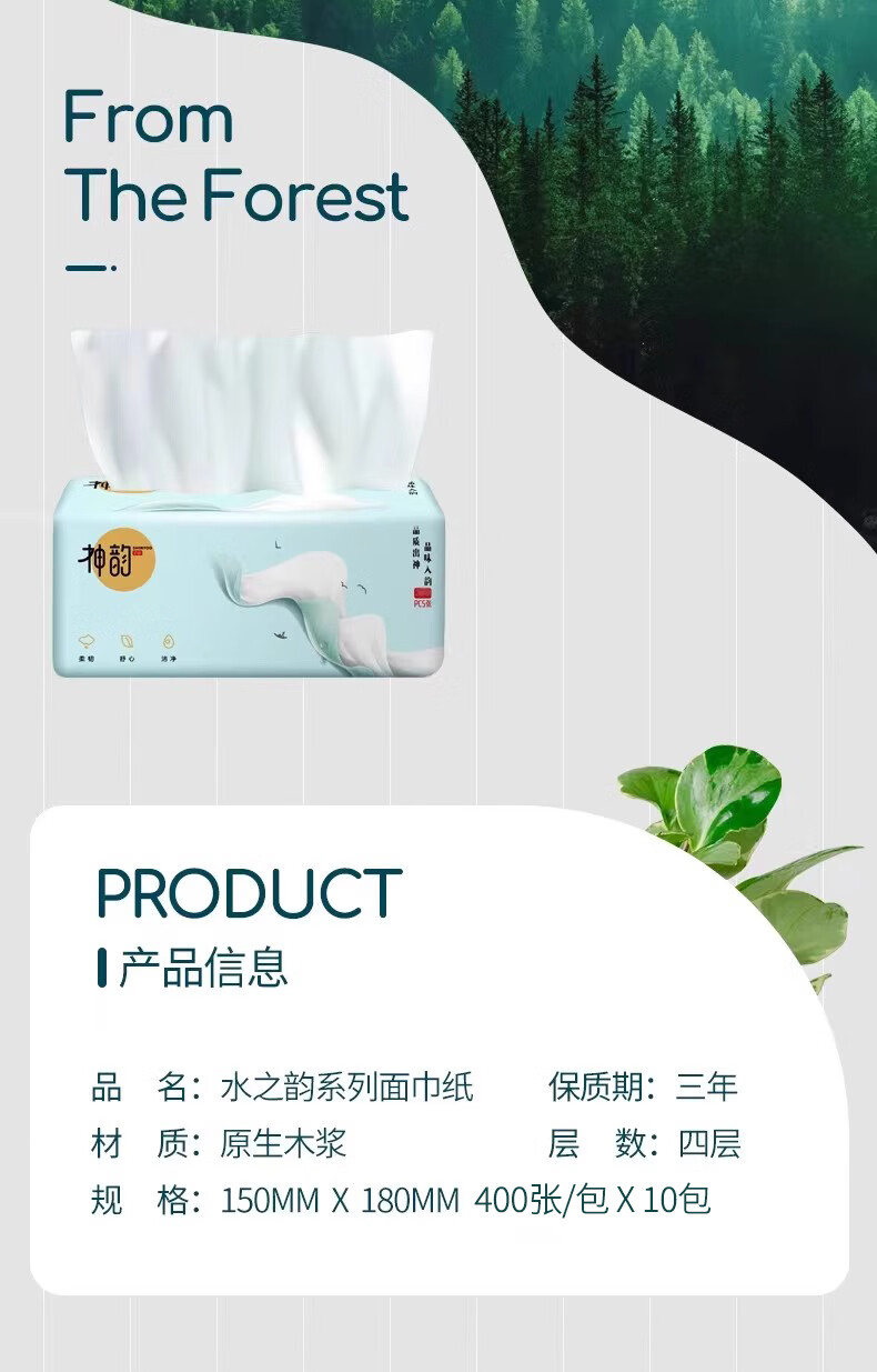 神韵 1707+1691 水之韵4层原木抽纸面巾纸柔韧可湿水擦手纸400张/包 10包/提*3提(30包)